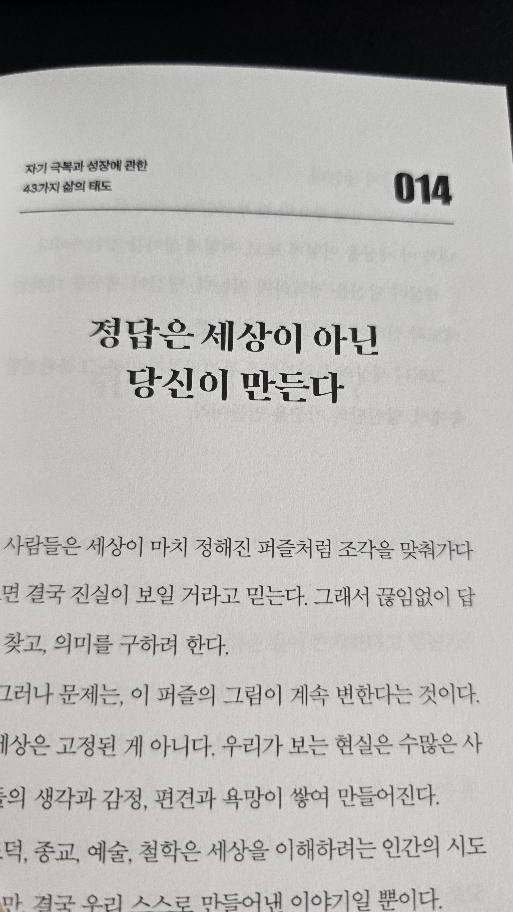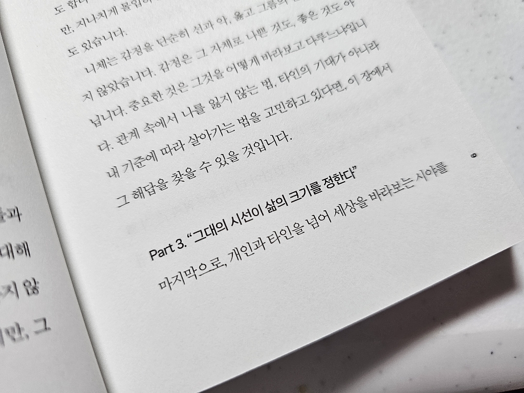 책 디자인도 강렬하고 세련돼서 실제로 받아보면 존재감이 꽤 있어요. 챕터마다 정리가 잘 되어 있고 문장도 자연스럽게 흘러가서 철학 입문자에게도 어렵지 않게 읽힐 것 같아요. 읽다 보면 자연스럽게 ‘나는 지금까지 얼마나 남의 시선 속에서 살고 있었을까?’라는 질문을 던지게 되고, 책을 덮고 나서는 내 삶을 다시 한번 재정비해보고 싶은 마음이 생겼습
