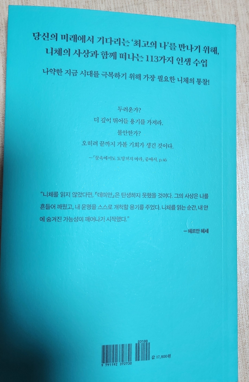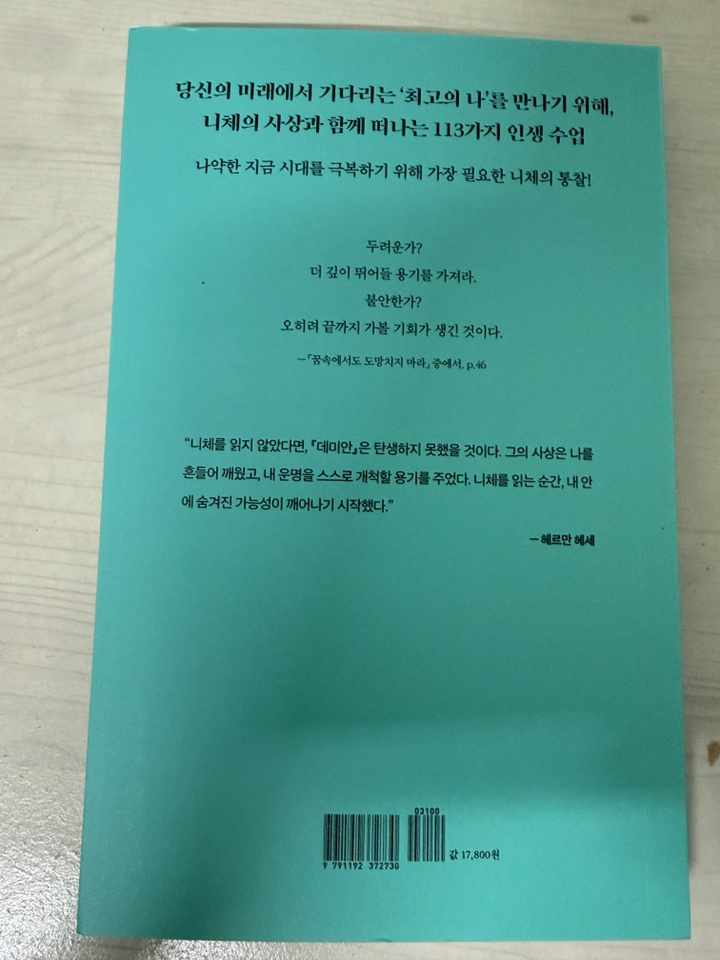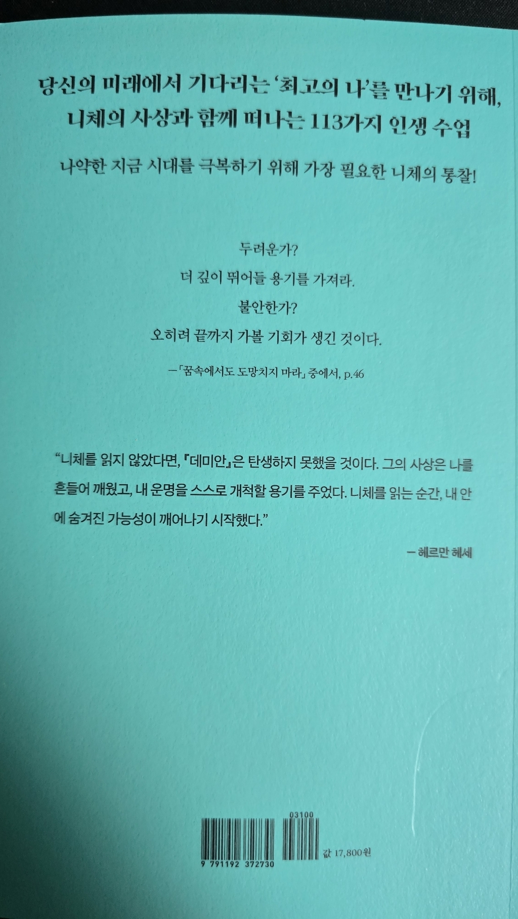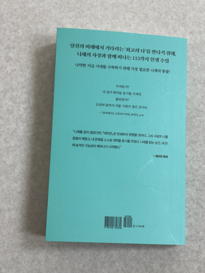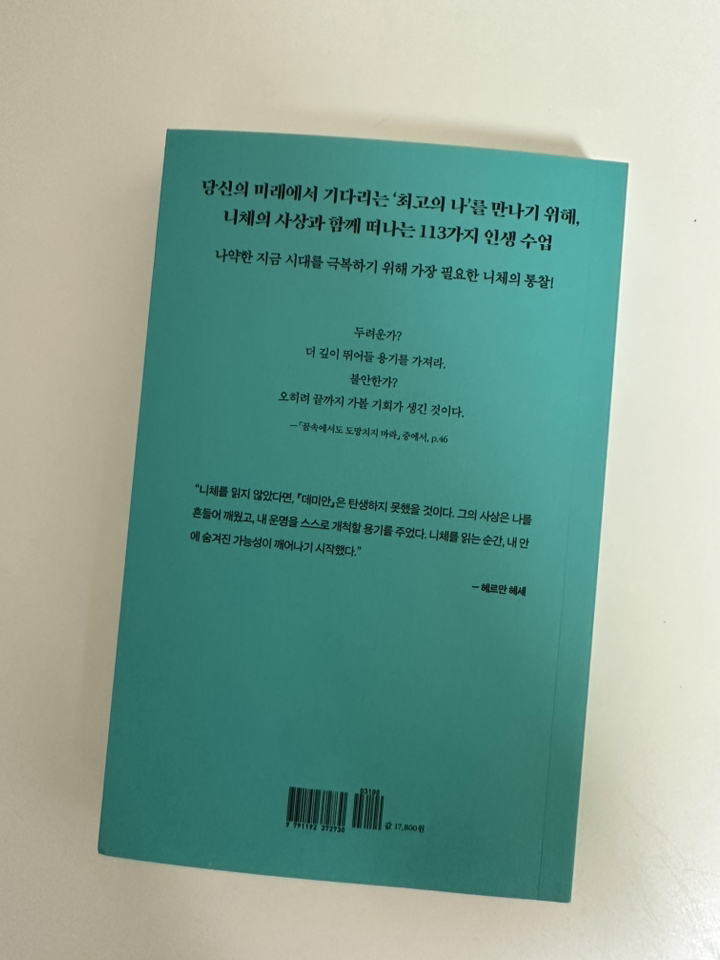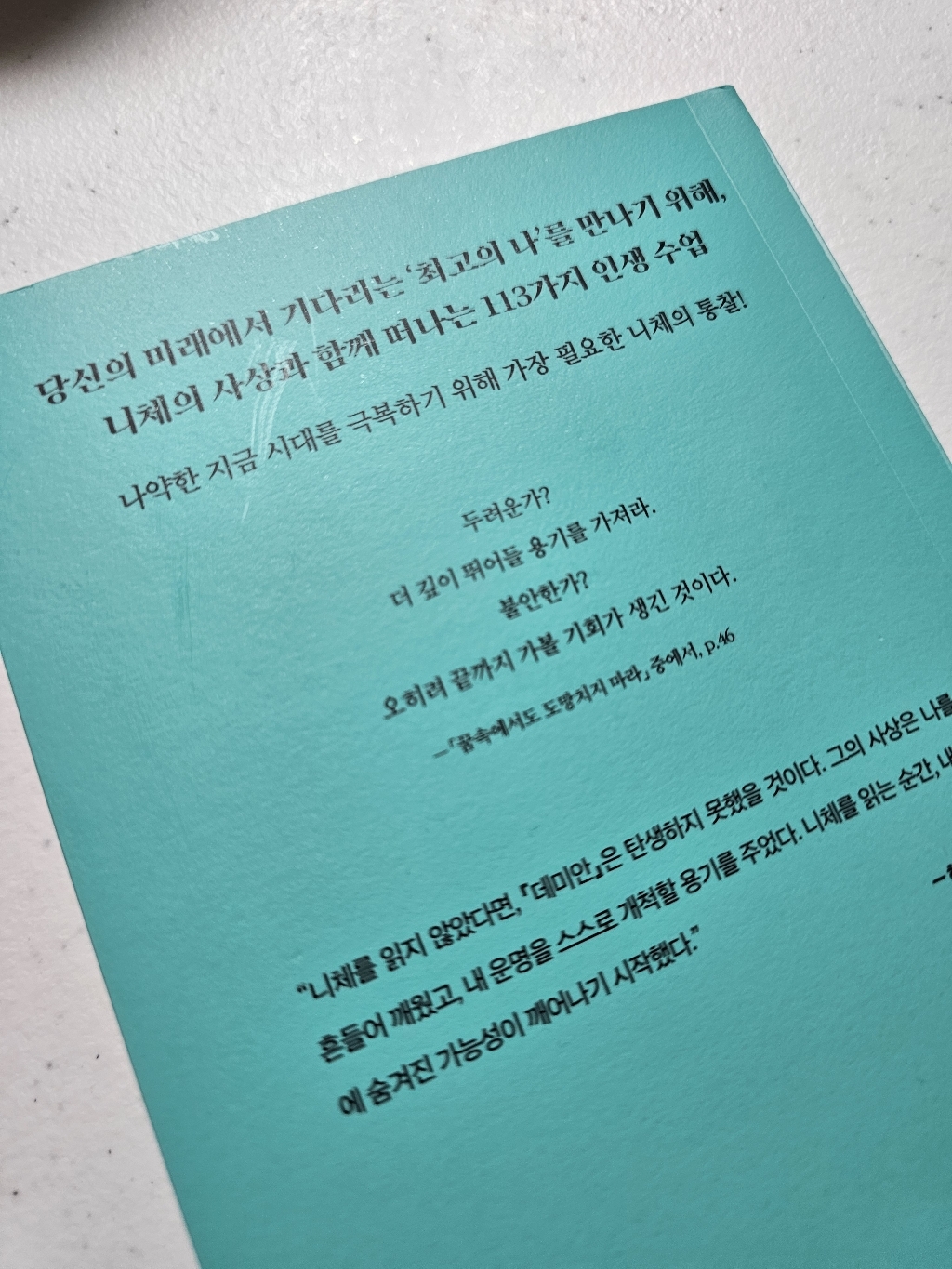 니체의 난해한 철학을 조금 더 쉽게 풀어줘서 철학 입문자나 자기 성찰을 원하는 사람도 쉽게 읽을 수 있겠더라구요!