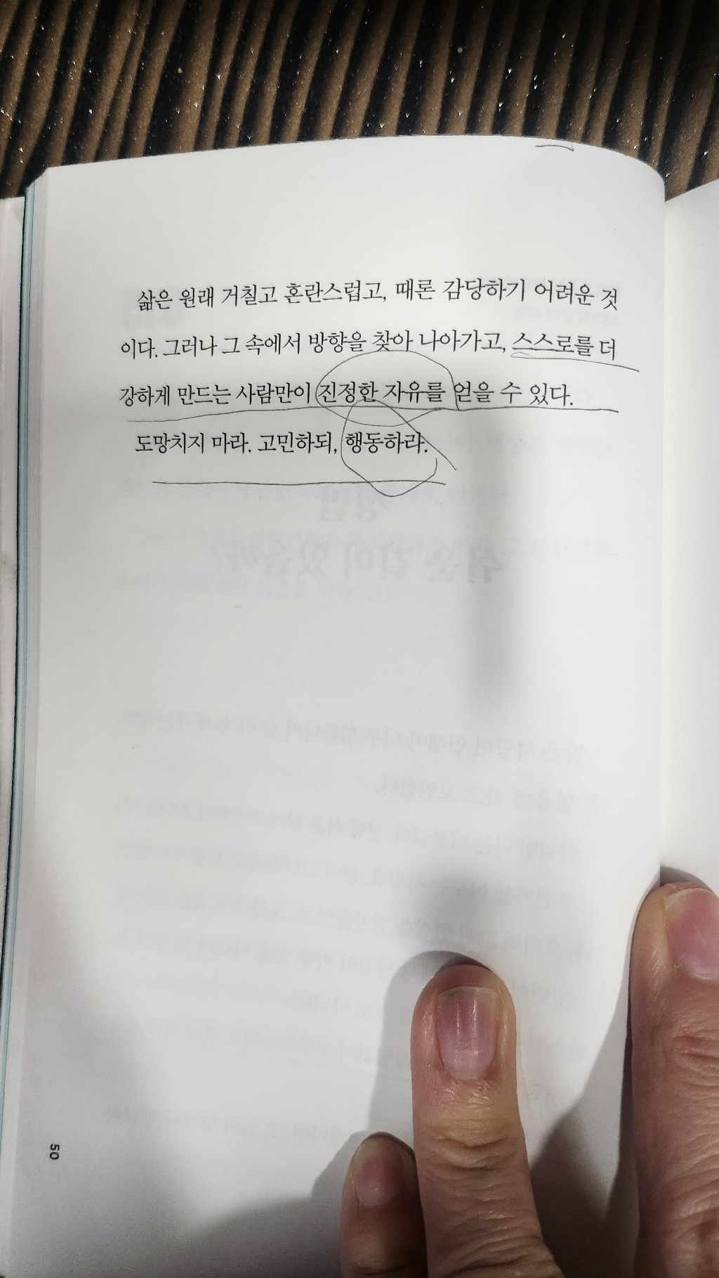 읽고 나면 자기 삶을 주도적으로 살아야겠다는 생각이 자연스럽게 들고, 반복해서 곱씹어볼 만한 구절이 많습니다.