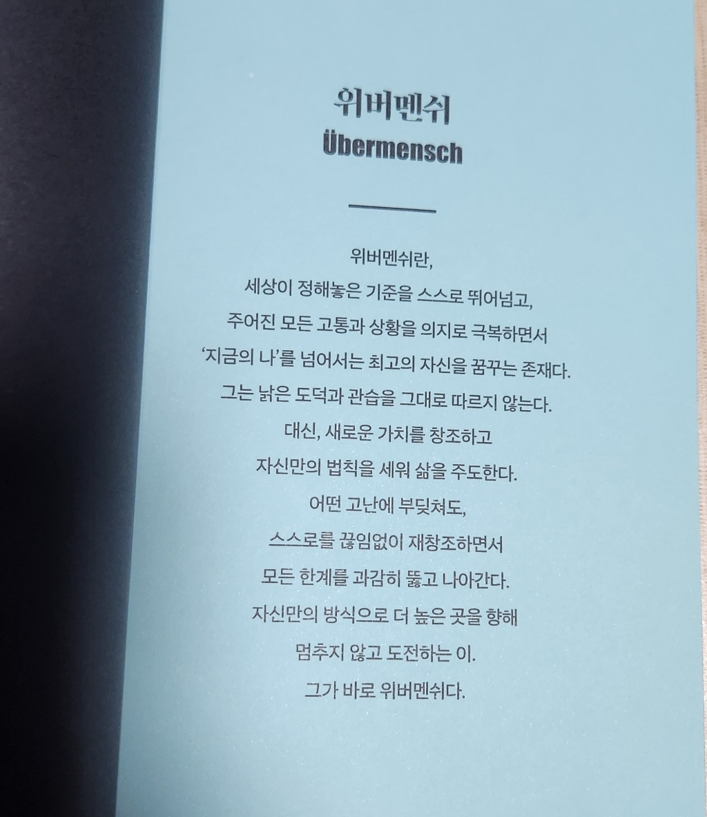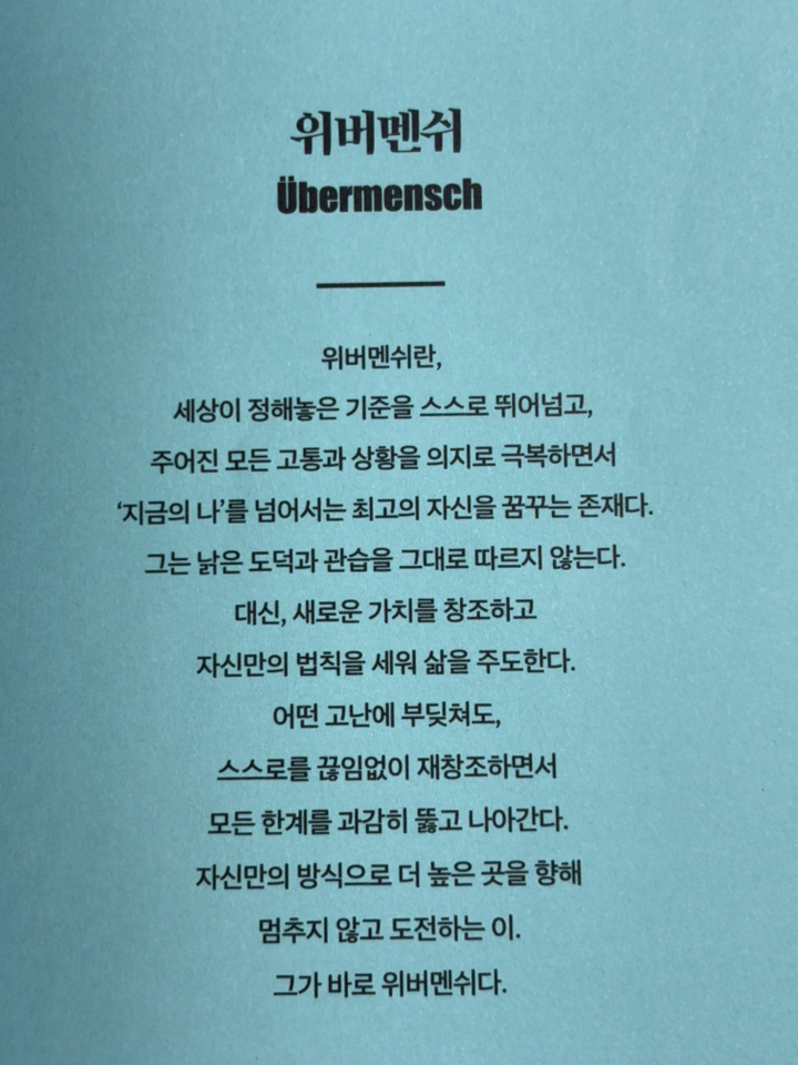 ​특히 위버멘쉬라는 개념… 저는 그냥 슈퍼맨 같은 초능력자인 줄 알았거든요. ㅋㅋ