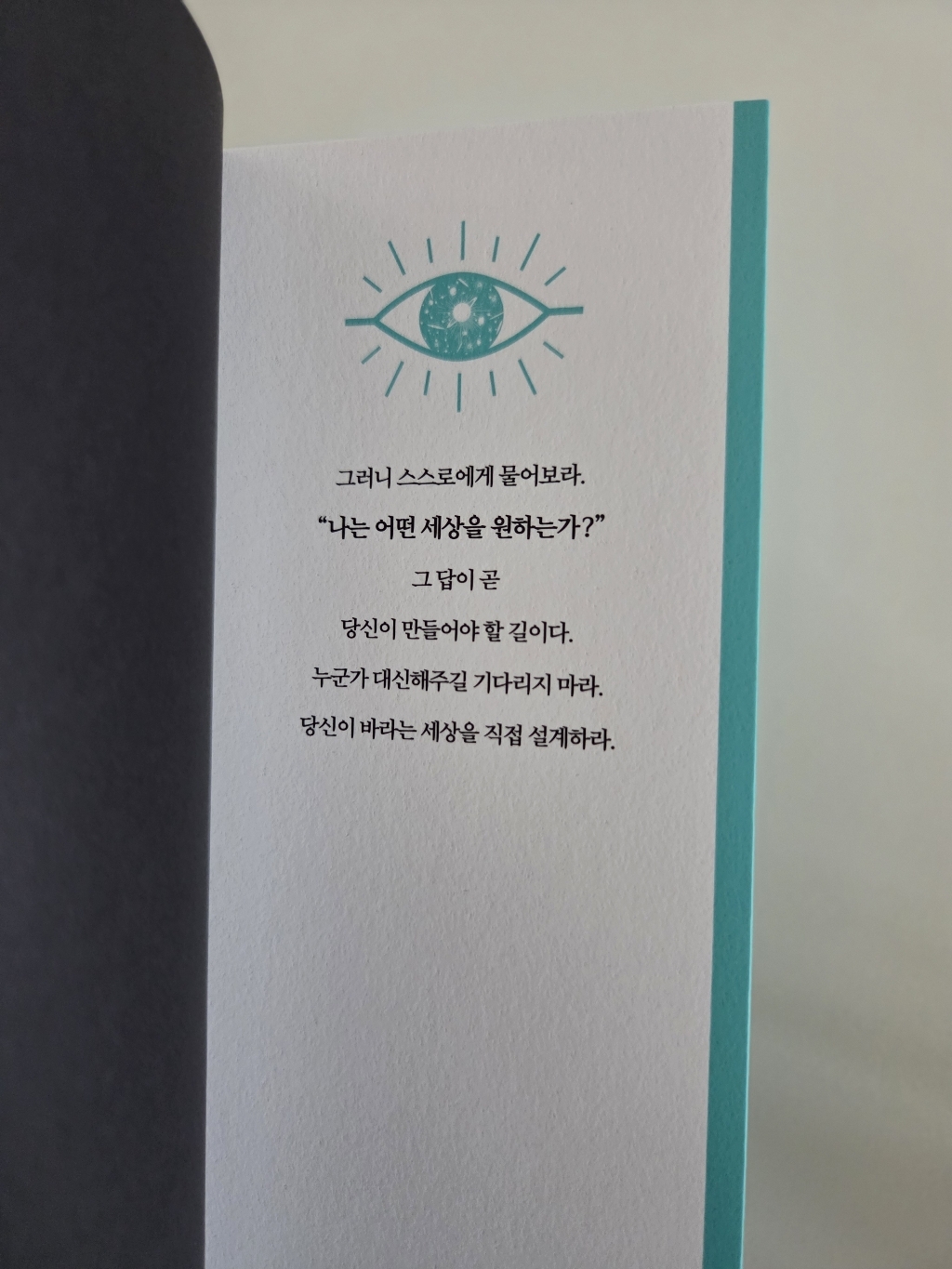 무엇보다 좋았던 점은 이 책이 단순히 “남을 신경 쓰지 말라”는 식의 피상적인 메시지에 그치지 않고, 자신의 의지로 산다는 것이 무엇인지 깊이 고민하게 만든다는 점이다. 책을 읽고 나면, ‘나는 지금 누구의 기준으로 살고 있는가?’라는 질문을 자연스럽게 던지게 된다. 그리고 그 질문은 독자로 하여금 자신을 더 솔직하게 바라보게 만든다.