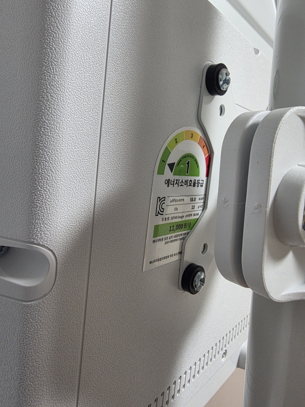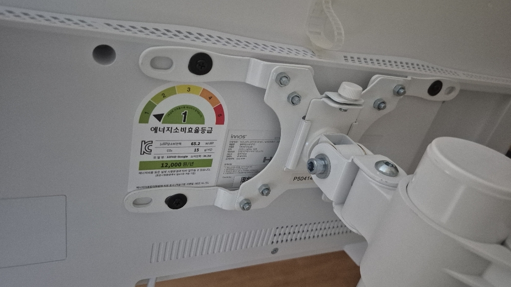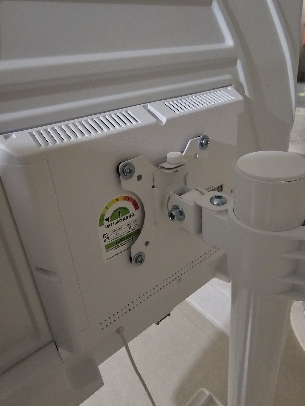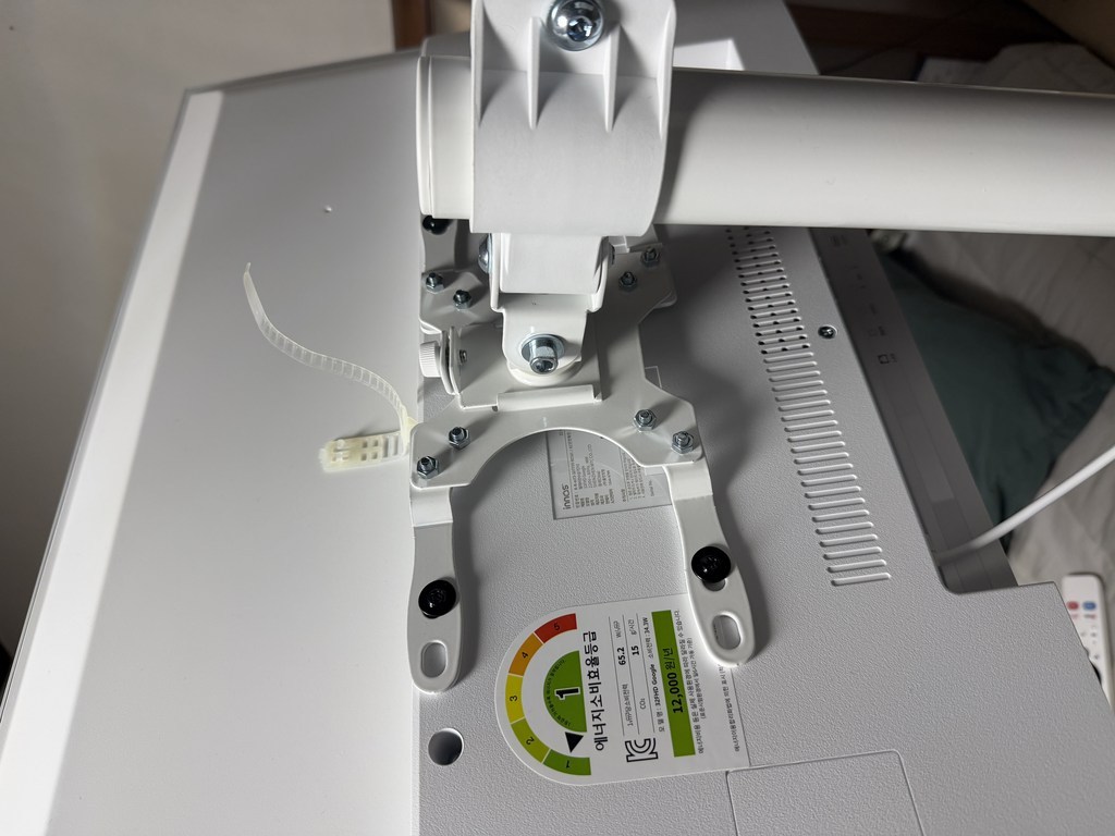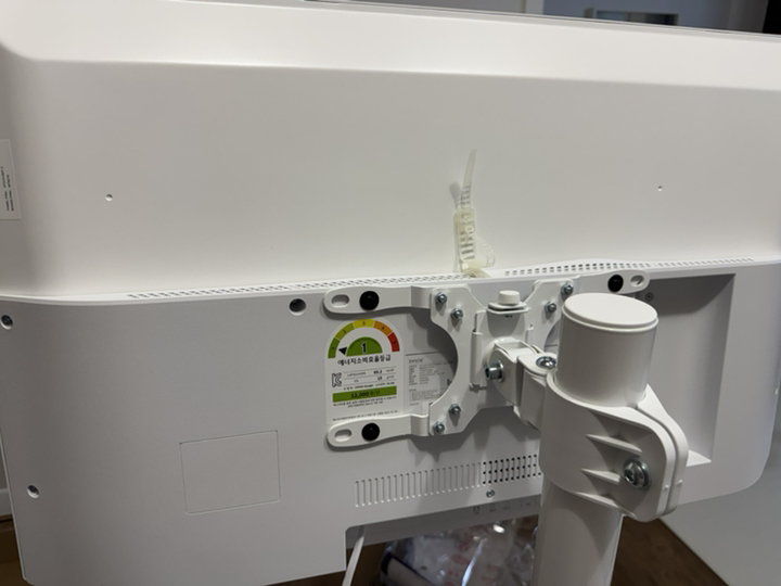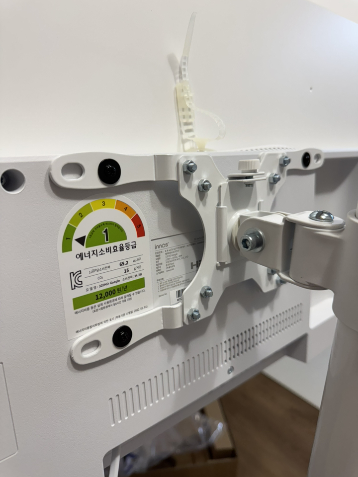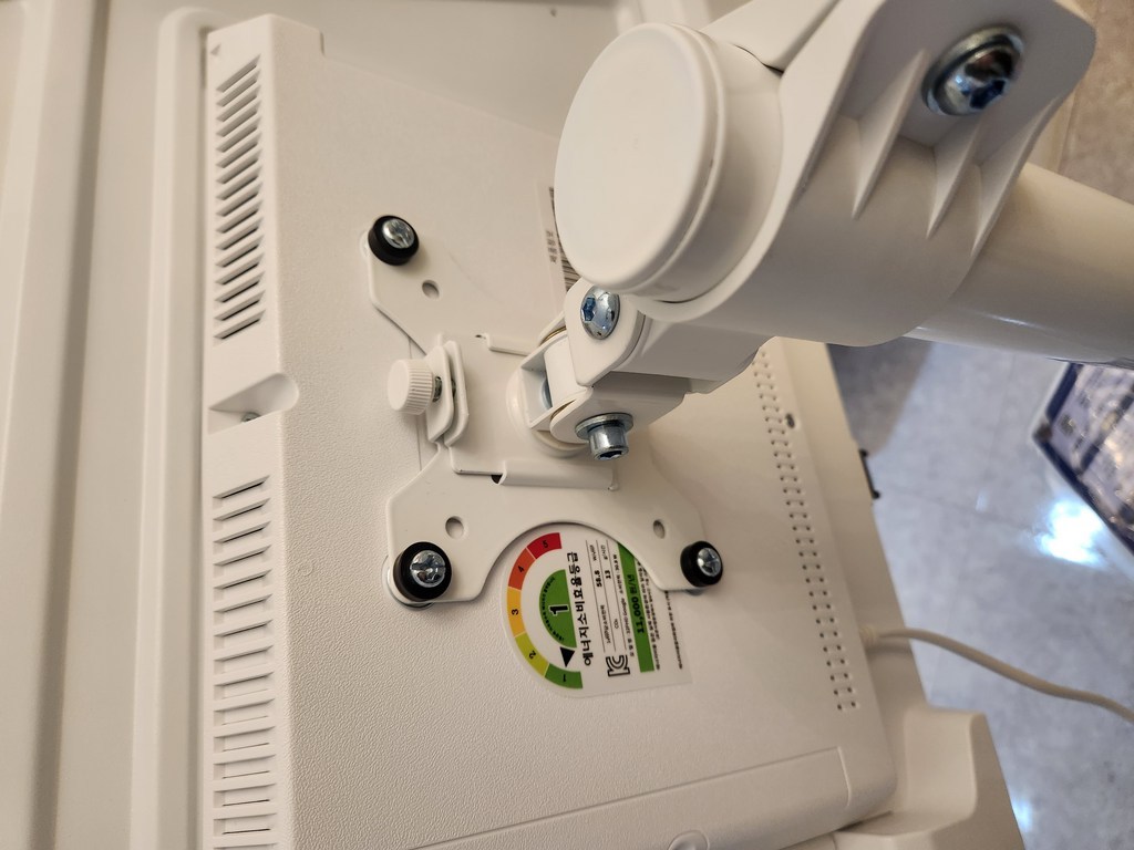 그런데 그런데 설명서 에서 틀린 설명이 있었음. 예를 들어 나사 A 나 B를 쓰라고 했는데 E를 써야 했음. 모델마다 써야 하는 나사가 다른데 그냥 한꺼번에 모든 모델 나사랑 부품을 보내줌. 설명서에서 쓰라는 나사가 안 맞을 수도 있으니 그냥 이것저것 시도해보시길 바람. 그리고 센스 문제를 언급하고 싶은 게 조립.설치 후에 에너지 소비 효율 등급 스티커와 제품명이 나와 있는 제품번호 스티커가 스탠드 봉에 가려져서 안 보임 그래서 에너지 효율 등급 환급금 신청 때 애를 많이 먹고 결국 다시 나사를 뽑아서 분해해야 했음. (사진 참조). 저와 비슷한 분 있을까봐 에너지 효율 등급 스티커하고 제품명 사진 같이 올려드림. 그리고 tv다이용 받침대도 같이오기때문에 다이위에 올려서 쓰려면 쓸 수 있음!