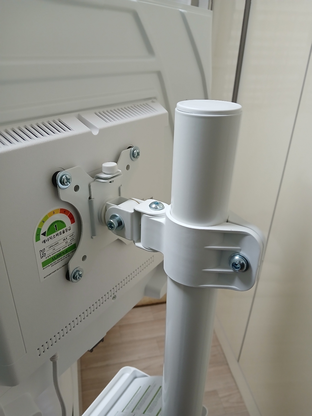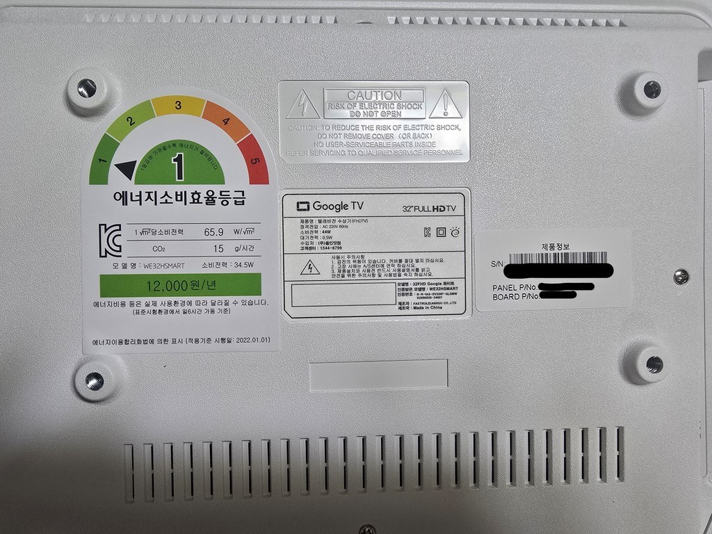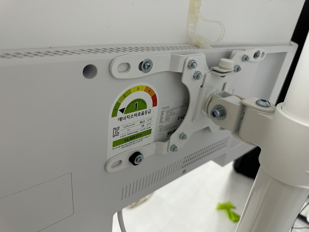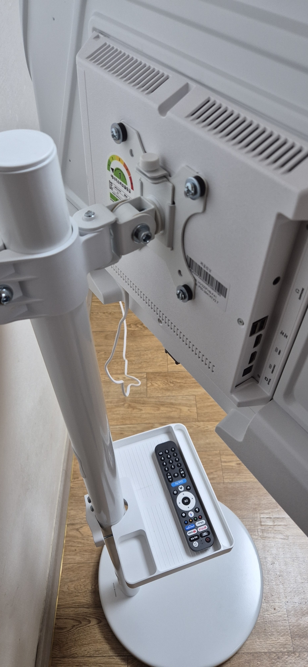 그런데 그런데 설명서 에서 틀린 설명이 있었음. 예를 들어 나사 A 나 B를 쓰라고 했는데 E를 써야 했음. 모델마다 써야 하는 나사가 다른데 그냥 한꺼번에 모든 모델 나사랑 부품을 보내줌. 설명서에서 쓰라는 나사가 안 맞을 수도 있으니 그냥 이것저것 시도해보시길 바람. 그리고 센스 문제를 언급하고 싶은 게 조립.설치 후에 에너지 소비 효율 등급 스티커와 제품명이 나와 있는 제품번호 스티커가 스탠드 봉에 가려져서 안 보임 그래서 에너지 효율 등급 환급금 신청 때 애를 많이 먹고 결국 다시 나사를 뽑아서 분해해야 했음. (사진 참조). 저와 비슷한 분 있을까봐 에너지 효율 등급 스티커하고 제품명 사진 같이 올려드림. 그리고 tv다이용 받침대도 같이오기때문에 다이위에 올려서 쓰려면 쓸 수 있음!