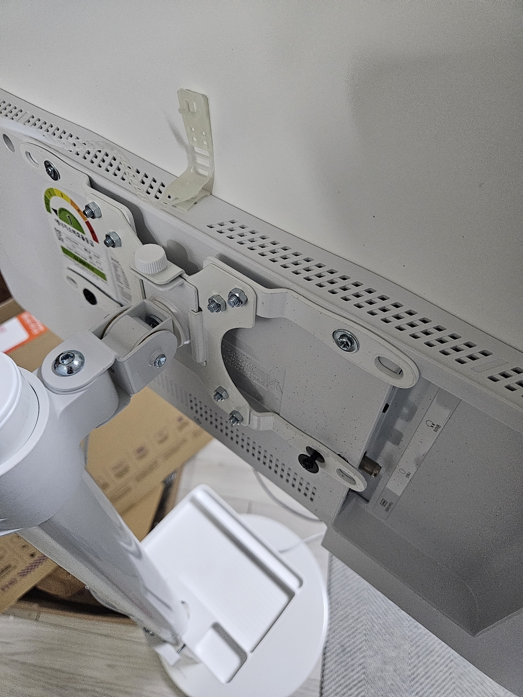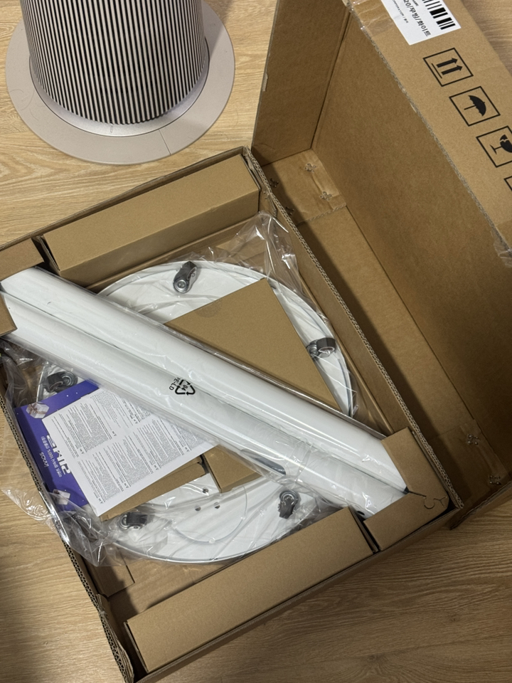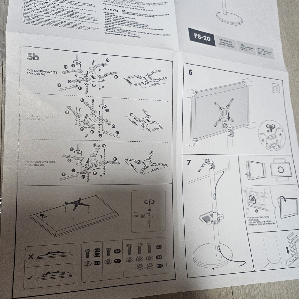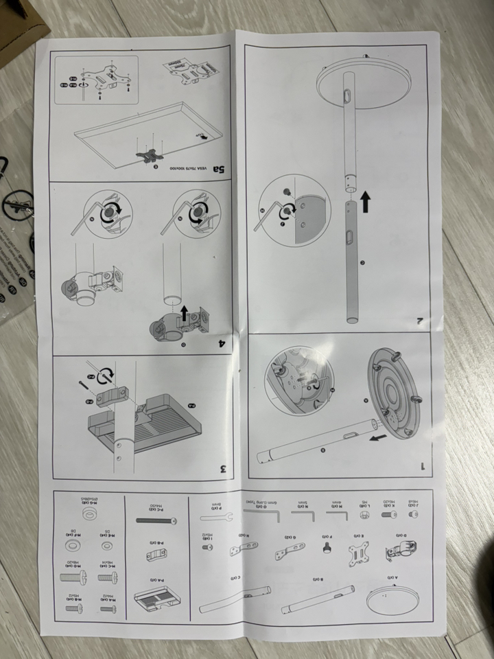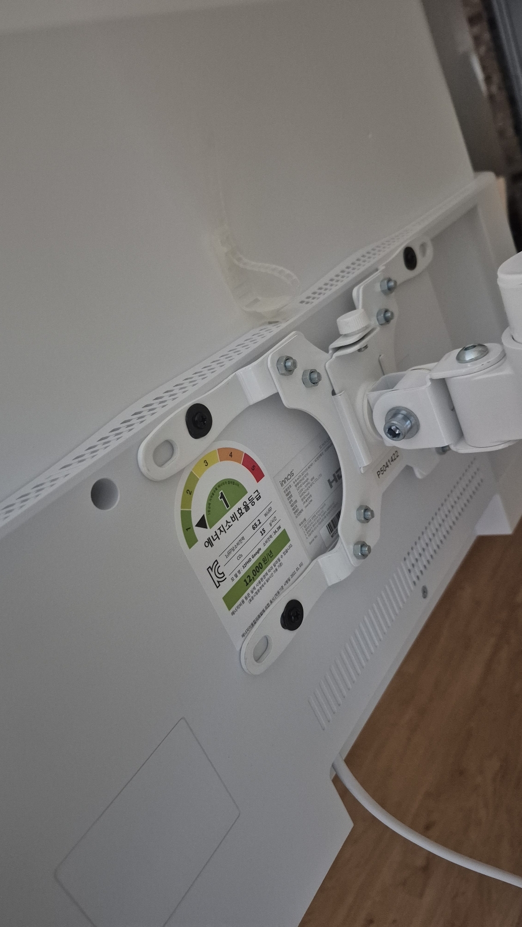 그런데 그런데 설명서 에서 틀린 설명이 있었음. 예를 들어 나사 A 나 B를 쓰라고 했는데 E를 써야 했음. 모델마다 써야 하는 나사가 다른데 그냥 한꺼번에 모든 모델 나사랑 부품을 보내줌. 설명서에서 쓰라는 나사가 안 맞을 수도 있으니 그냥 이것저것 시도해보시길 바람. 그리고 센스 문제를 언급하고 싶은 게 조립.설치 후에 에너지 소비 효율 등급 스티커와 제품명이 나와 있는 제품번호 스티커가 스탠드 봉에 가려져서 안 보임 그래서 에너지 효율 등급 환급금 신청 때 애를 많이 먹고 결국 다시 나사를 뽑아서 분해해야 했음. (사진 참조). 저와 비슷한 분 있을까봐 에너지 효율 등급 스티커하고 제품명 사진 같이 올려드림. 그리고 tv다이용 받침대도 같이오기때문에 다이위에 올려서 쓰려면 쓸 수 있음!