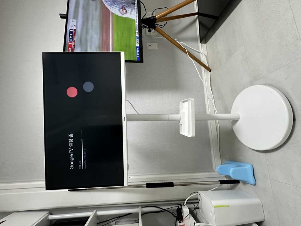 큰 TV 옆에서 조용히 제 역할 다 하는 ‘서브TV계의 숨은 히어로’ 느낌!