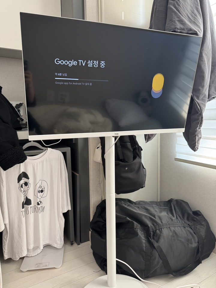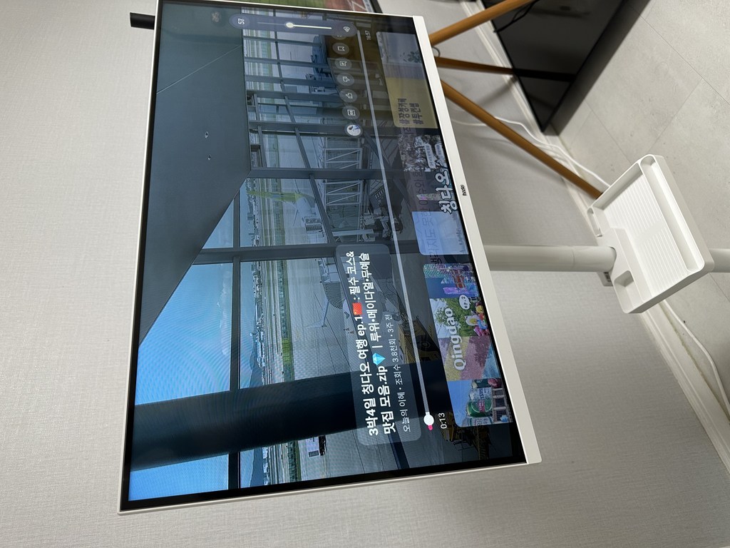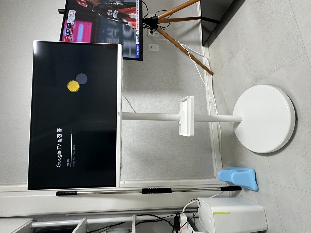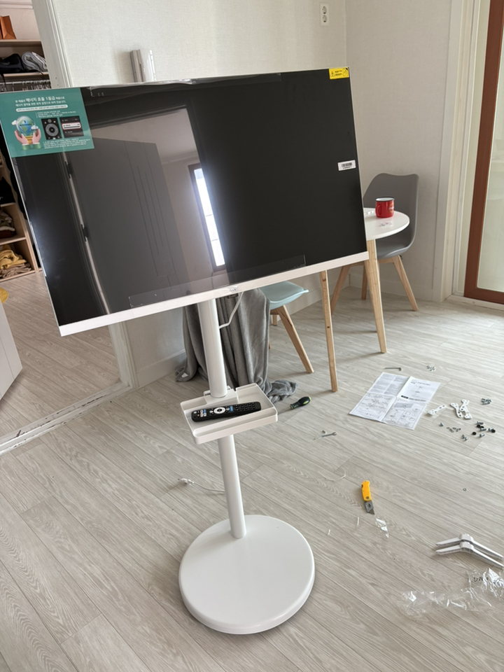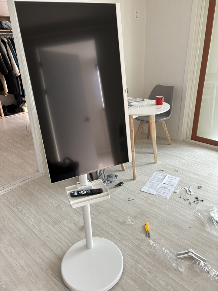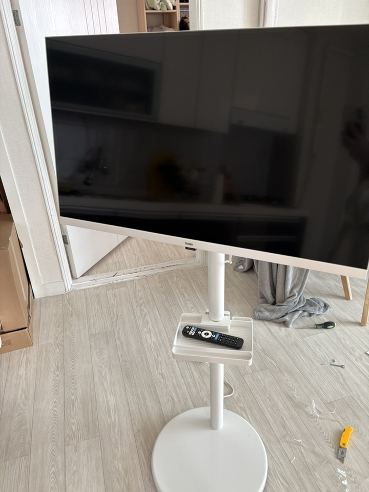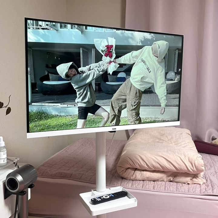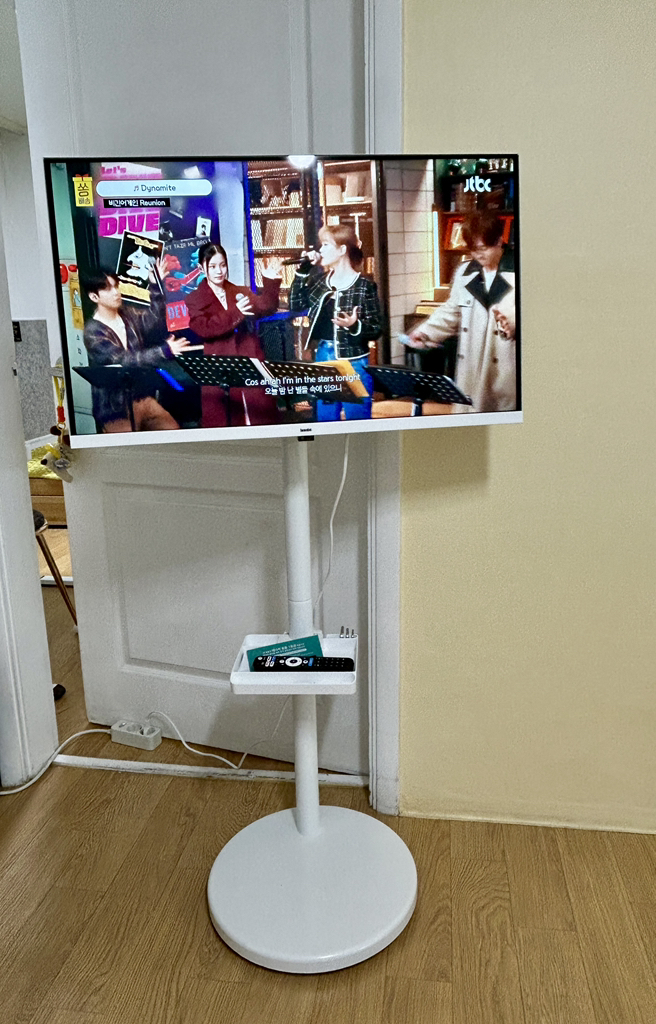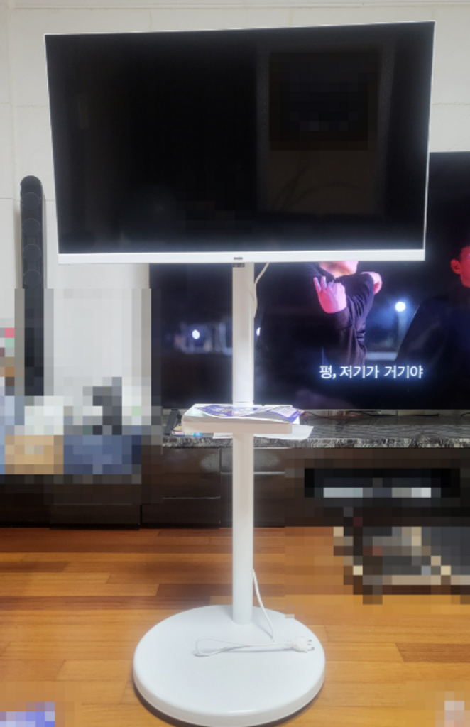 거치대 덕분에 TV를 거실, 침실, 주방 등 원하는 장소로 이동해 쓸 수 있어 공간 활용 면에서는 유리했습니다. 움직이면서 시청 위치를 바꿀 때 각도 조절도 수월했습니다.