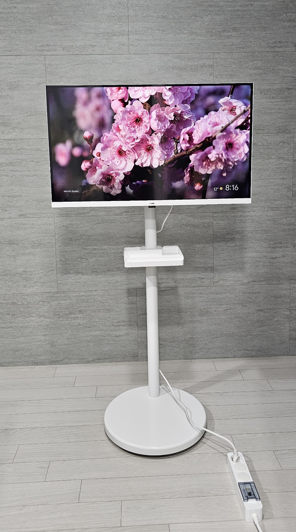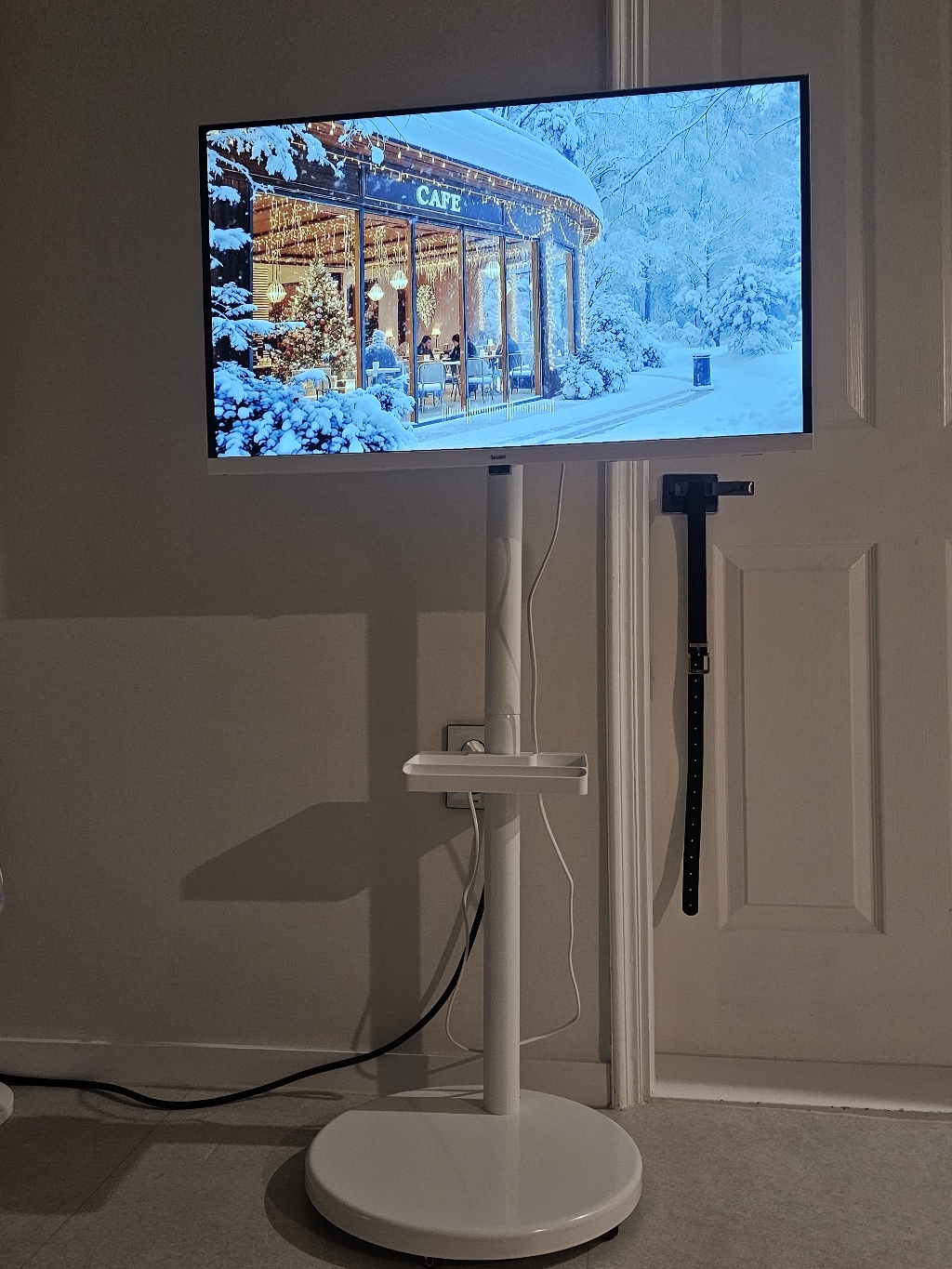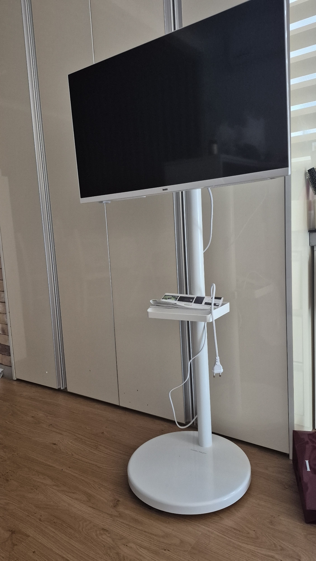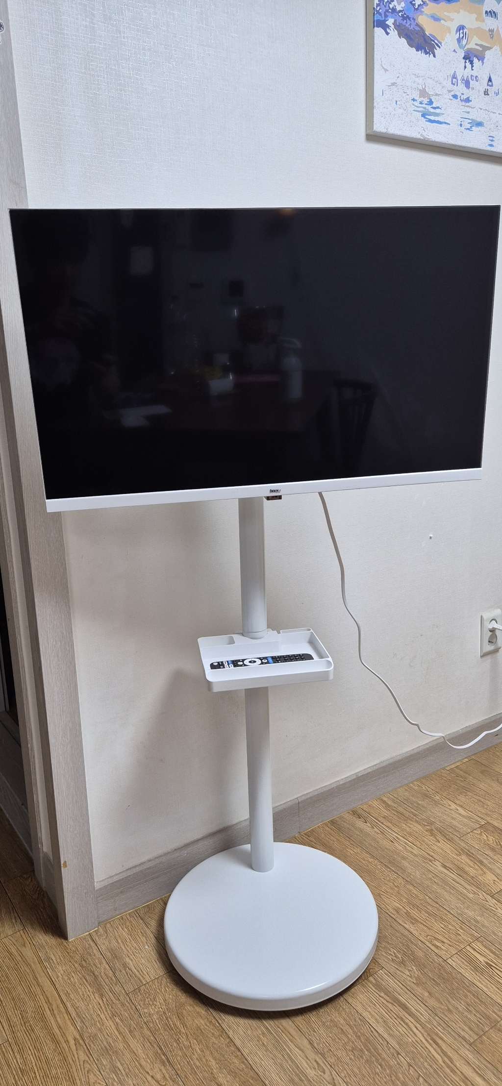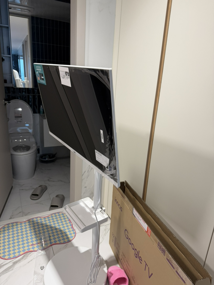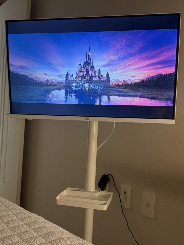 거치대 덕분에 TV를 거실, 침실, 주방 등 원하는 장소로 이동해 쓸 수 있어 공간 활용 면에서는 유리했습니다. 움직이면서 시청 위치를 바꿀 때 각도 조절도 수월했습니다.