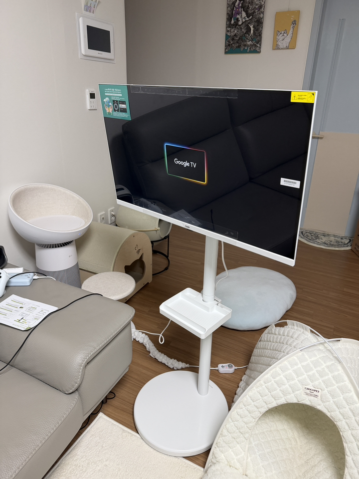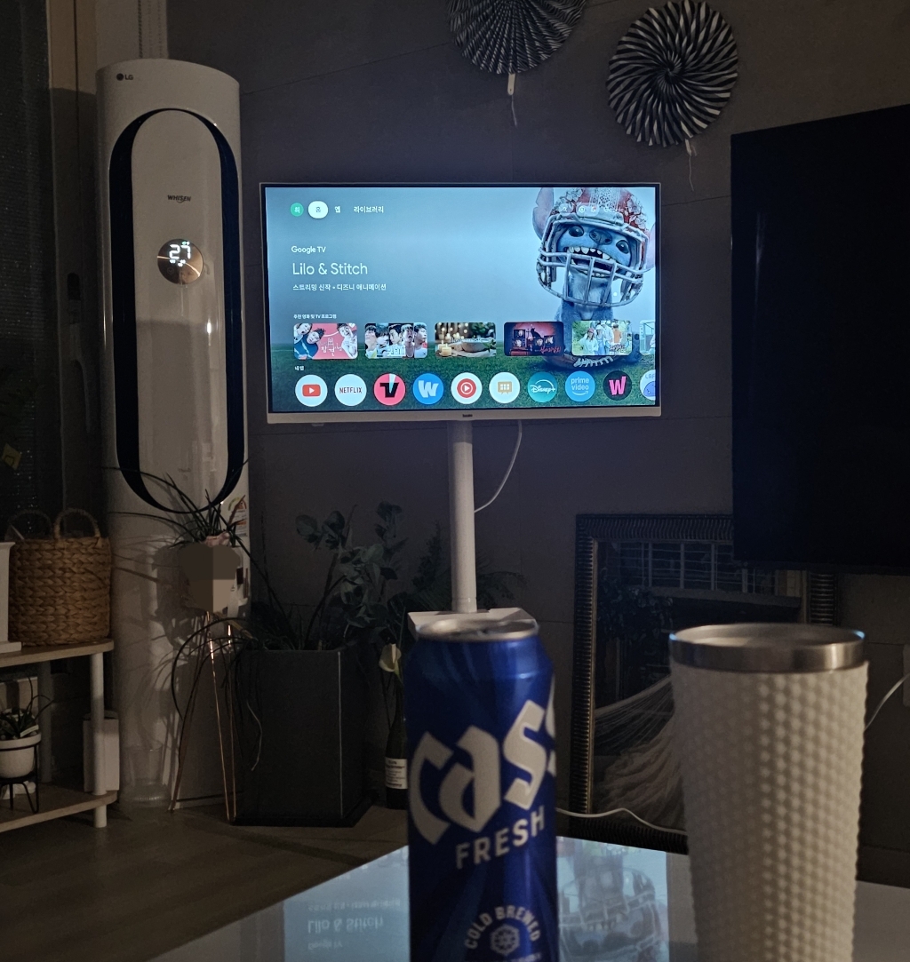 설치도 어렵지 않았고, 스마트 기능(ott, 유튜브 등)도 무리 없이 실행되고, 쉽게 이동할 수도 있어 가성비가 무척이나 좋은 TV라고 느꼈어요.