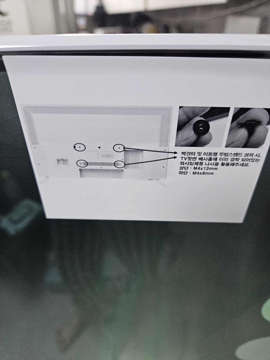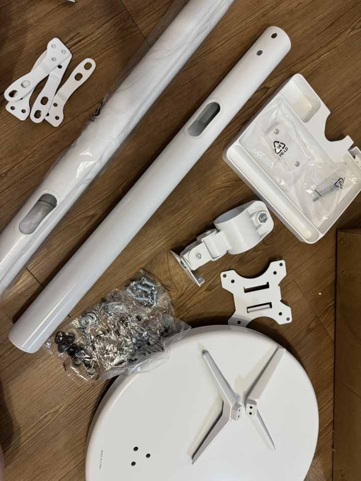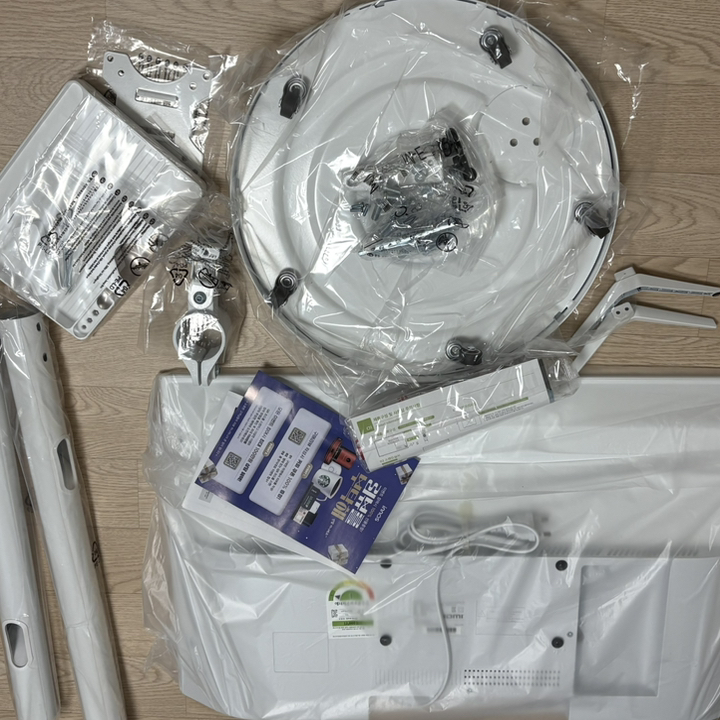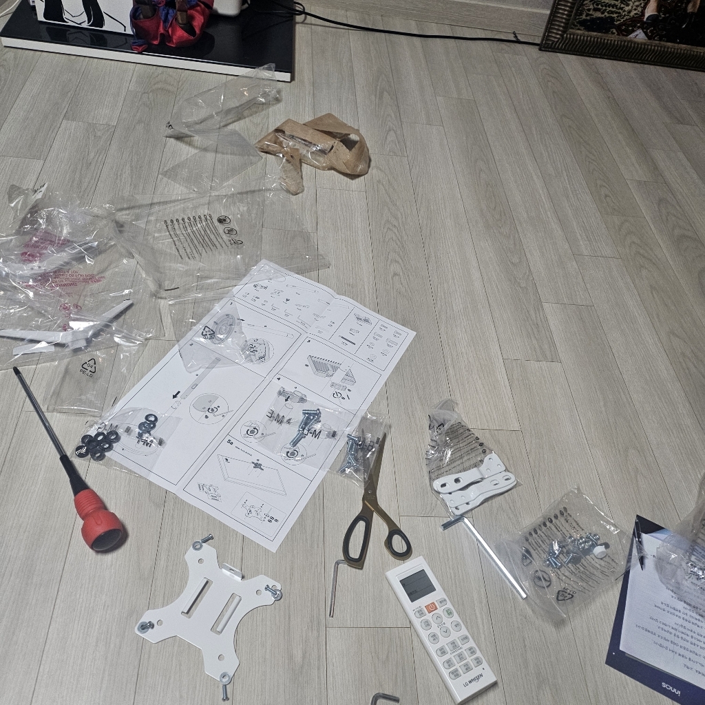 남편한테 조립부탁했어요 32인치라 아이들방에 놓기 적당하고 설치도 바로 하더라고요 거치대에 조립하는 나사와 기역자드라이버 들어있고 무빙거치대에 조립하는 나사 따로 들어있어서 필요한 나사들만 사용하면 될것같더라고요