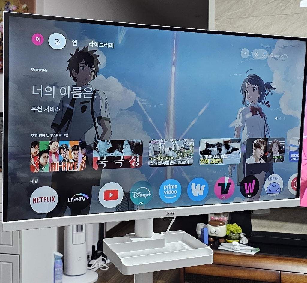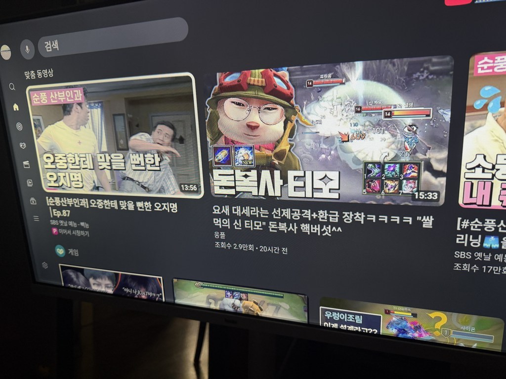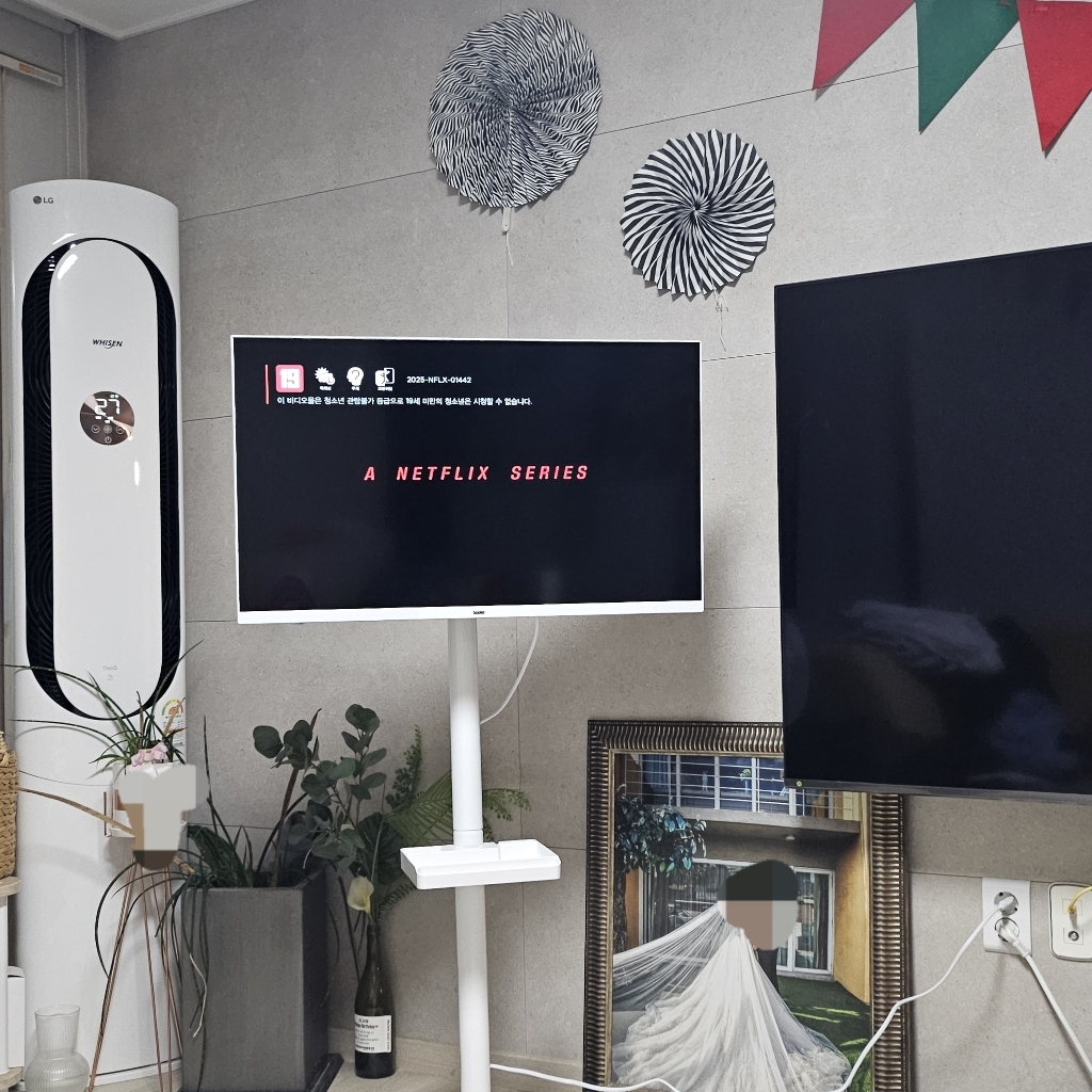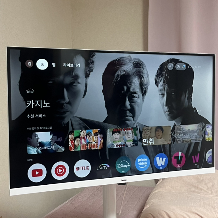 거실 tv만큼의 선명한 느낌은 아니지만, 일상적으로 드라마나 OTT를 시청하는 목적에는 충분하다고 느껴집니다.