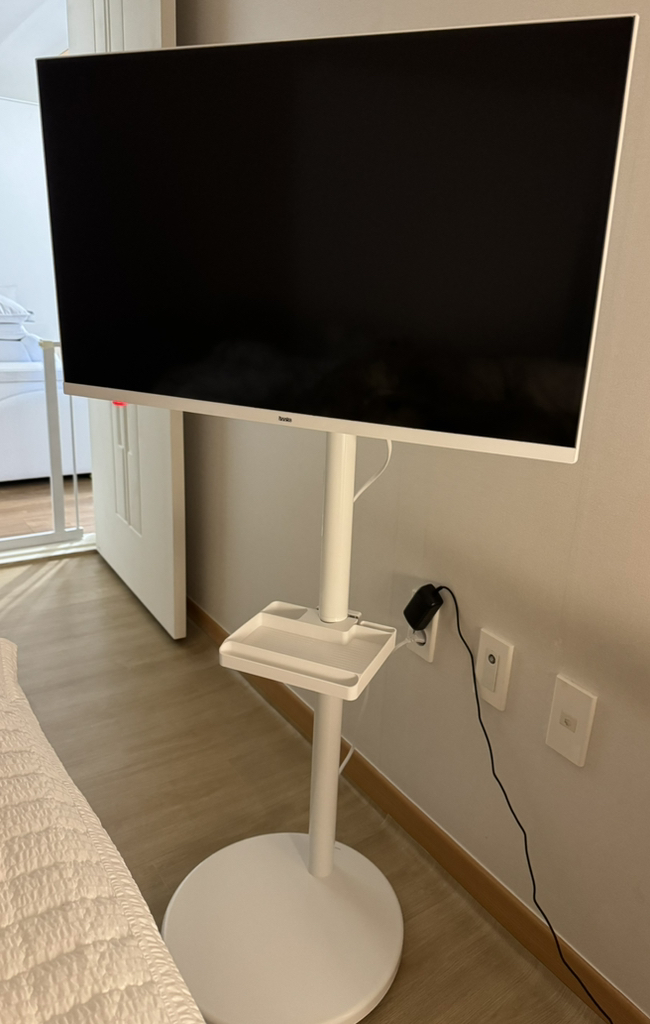하단 바퀴 달린 무빙거치대 덕분에 거실, 침실, 주방 어디든 손쉽게 이동 가능했어요. 공간과 분위기에 따라 TV 위치를 자유롭게 바꿀 수 있어 매우 실용적이었습니다