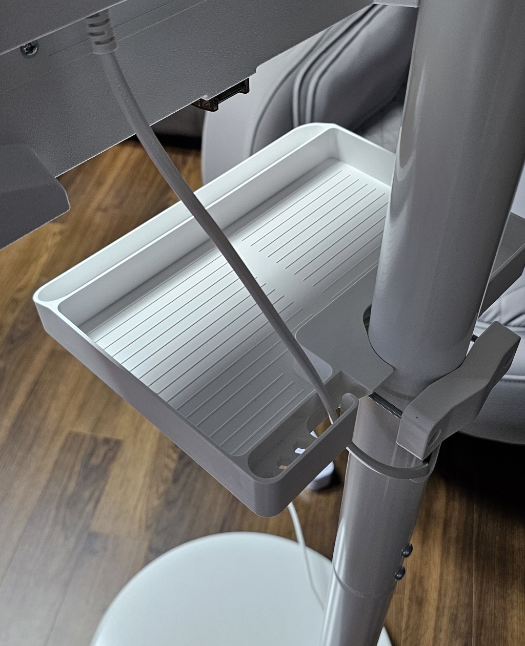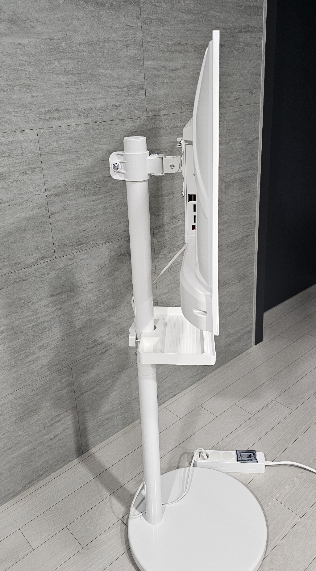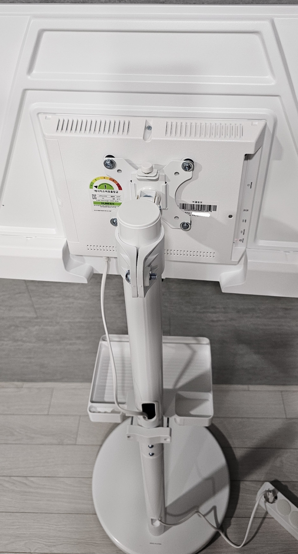화이트 스탠드 디자인이라 인테리어를 해치지 않고 선 정리도 깔끔하게 할 수 있어 전체적인 만족도가 높았습니다.