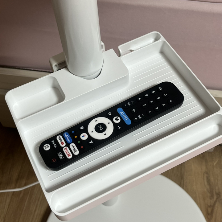 그다음, 구성품이 마음에 들었어요. 거치대며, 리모컨까지 수납할수있고 바퀴도 잘 굴러가고! 생각보다 이런 부속품의 내구성이 뛰어났어요.