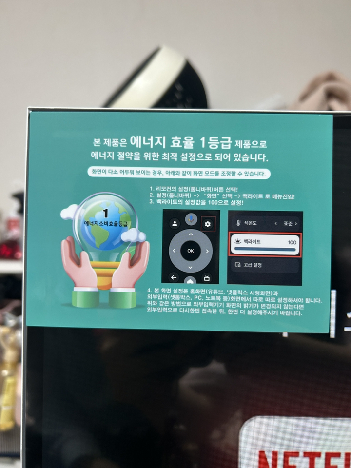 무엇보다 스마트 기능이 들어 있어서 리모컨 하나로 유튜브, 넷플릭스 다 되니까 진짜 편해요