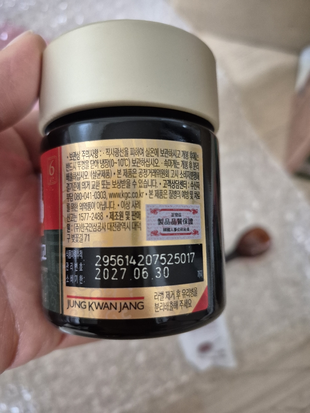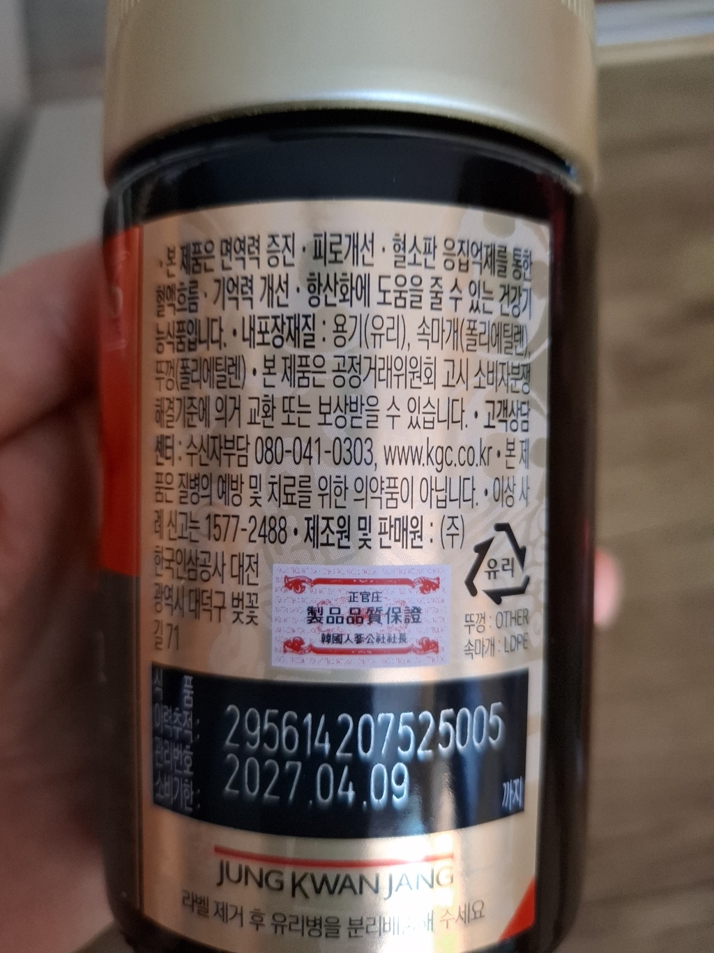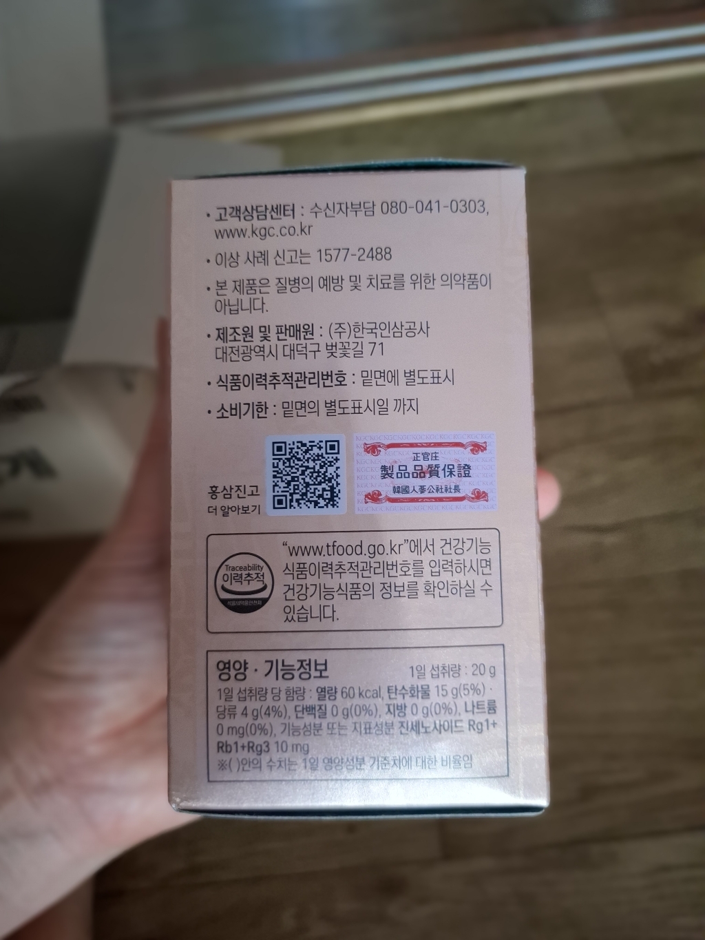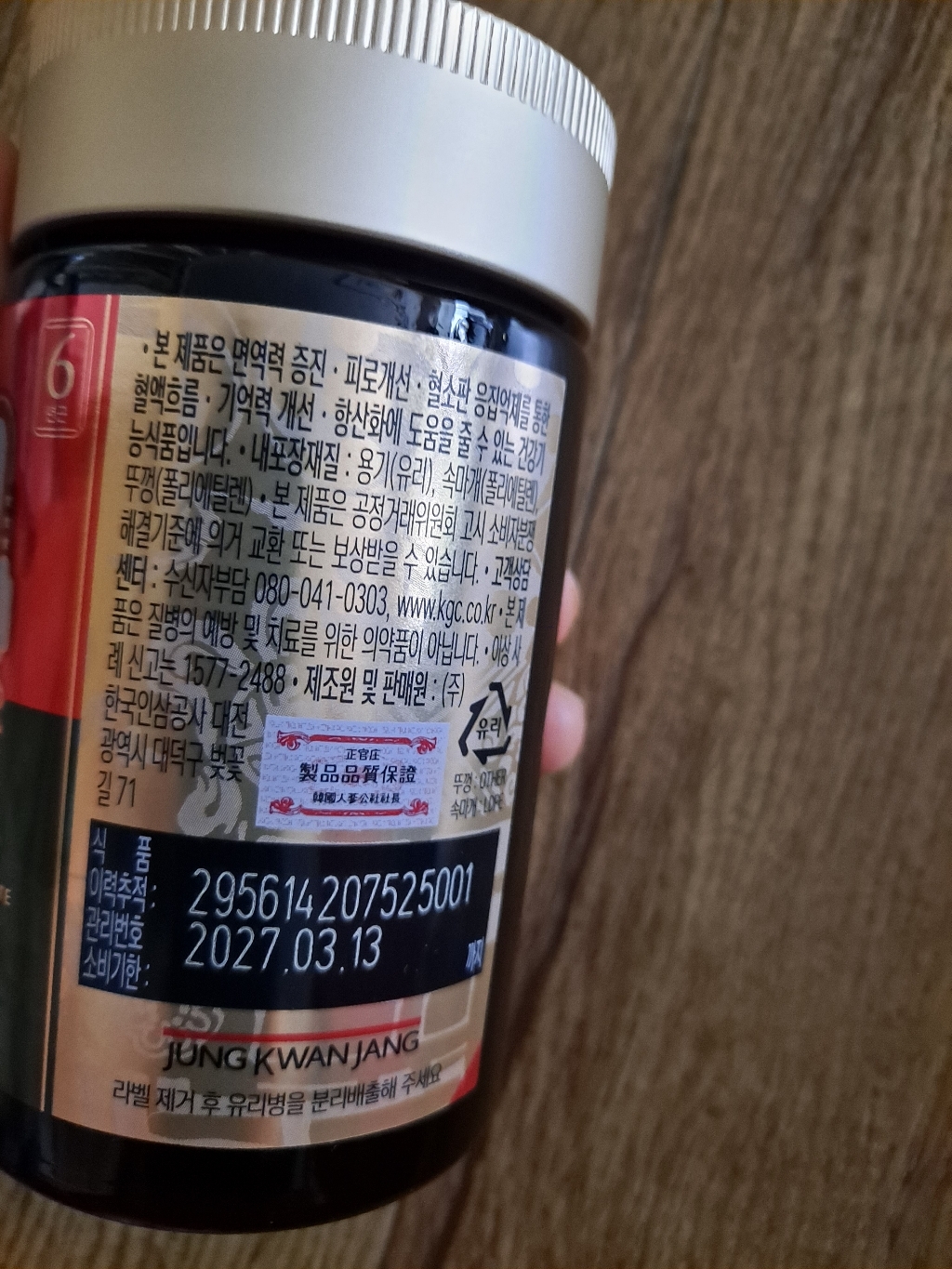 기능·표시: 제품 라벨에 건강기능식품 표기가 보이며, 정관장 제품 특성상 제조·위생 관리가 비교적 잘된 편.