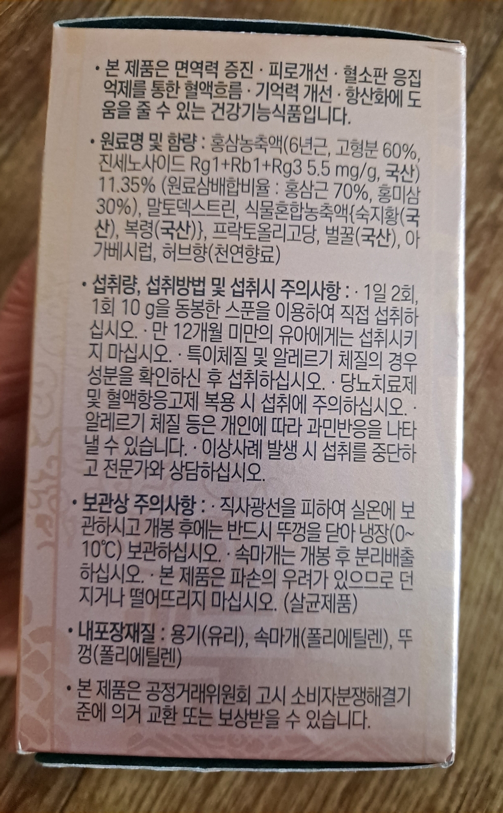 홍삼농축액 외에 숙지황 복령등 몇몇의 부재료가 들어가네요.