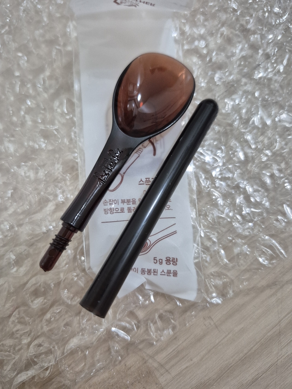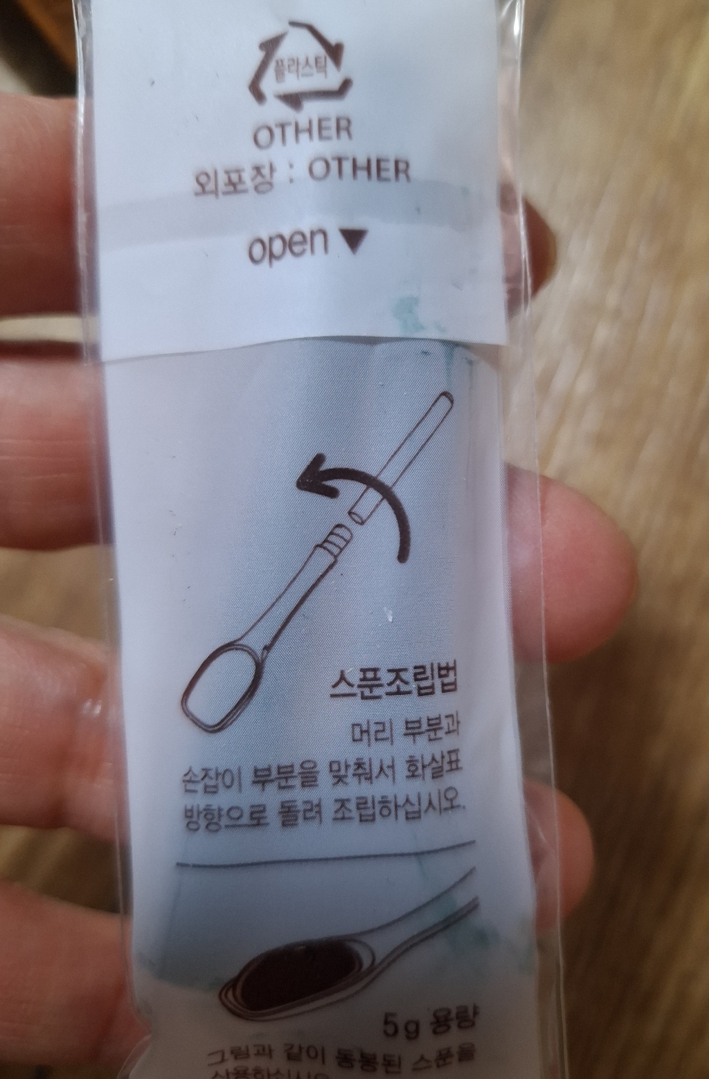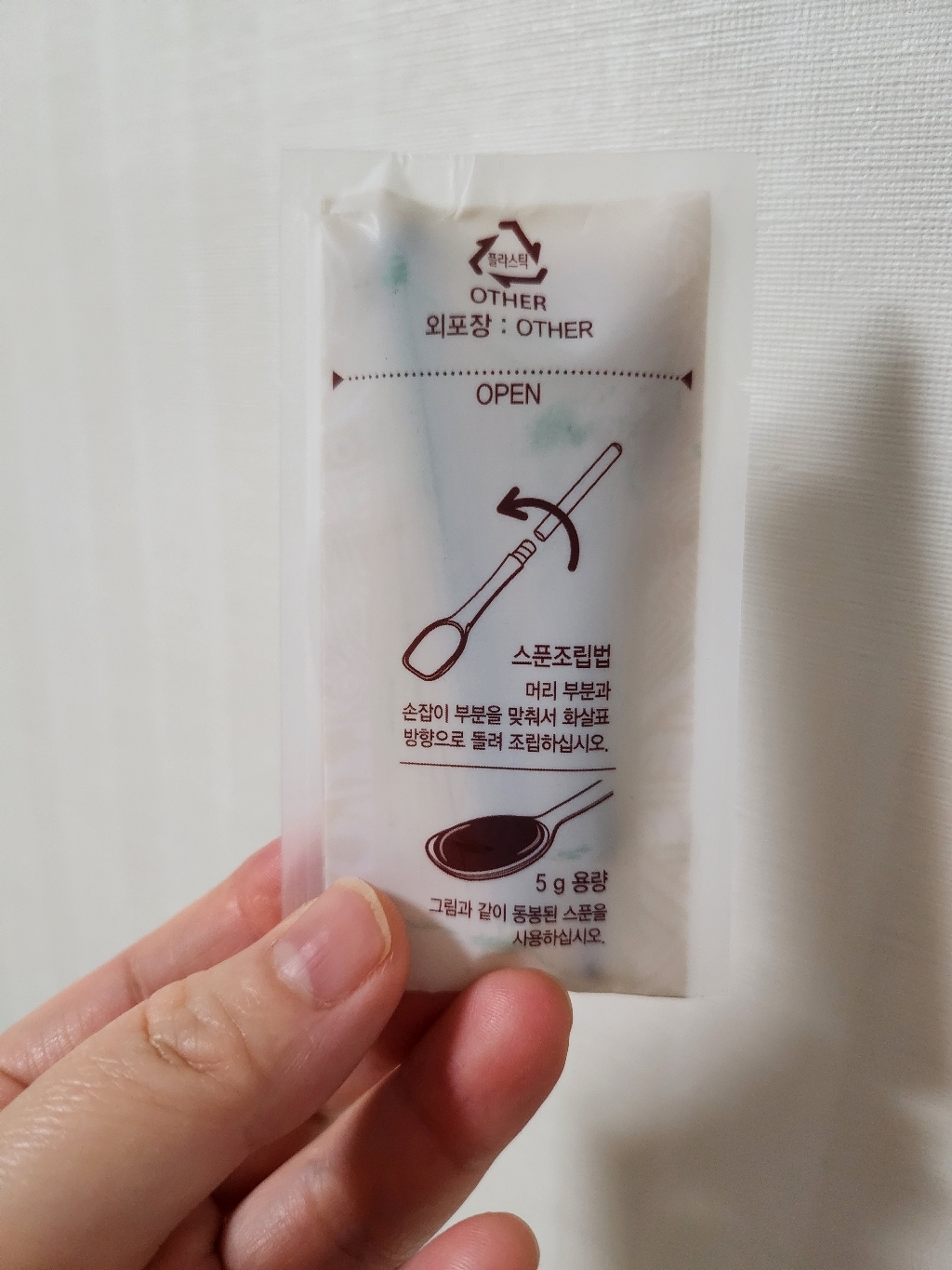 포장상자 안에는 본적품 말고 플라스틱 숟가락도 하나 들어있는데