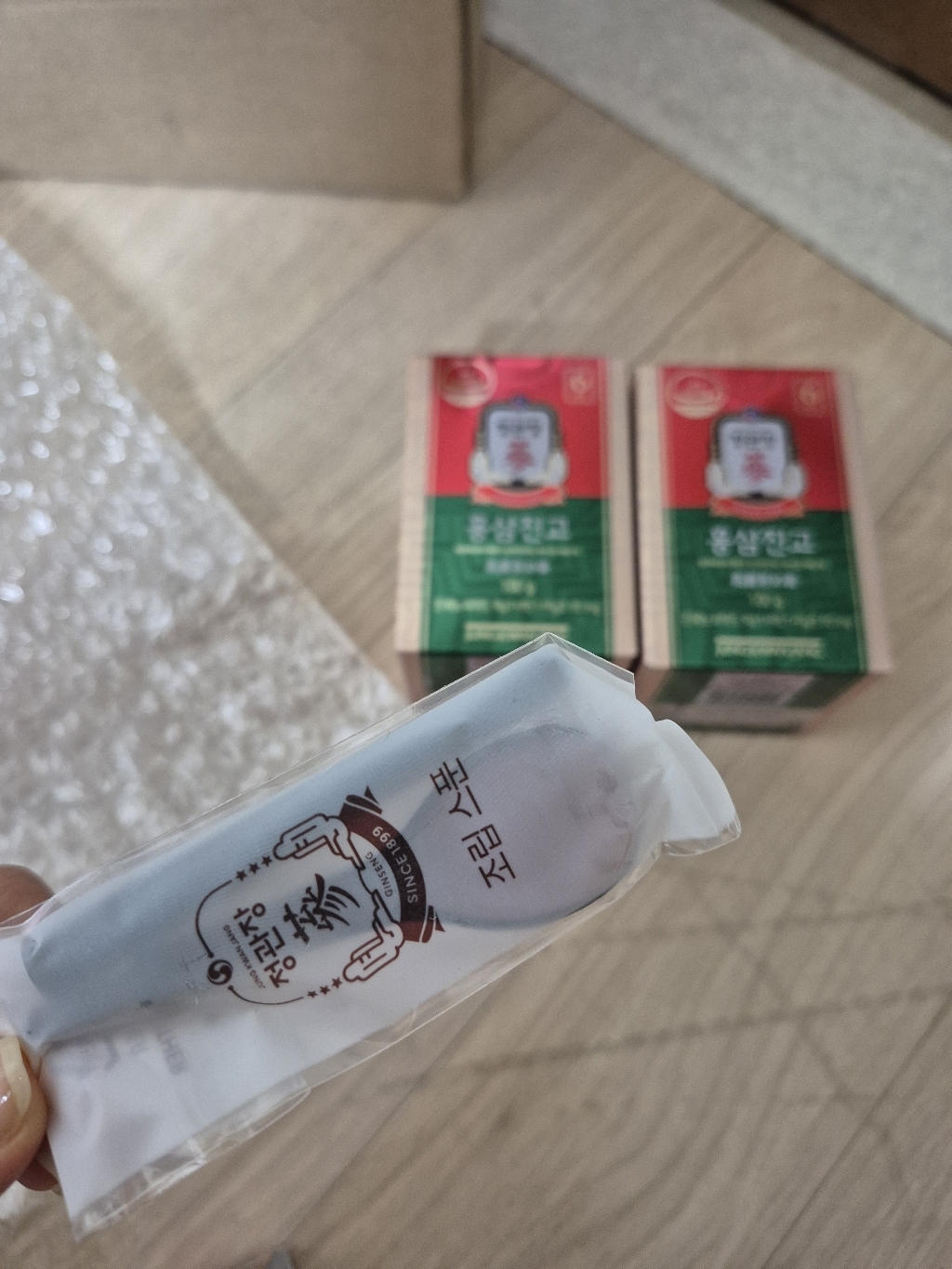홍삼진고는 스틱형이나 액상보다 농축된 고형 타입이라서 한 숟갈씩 떠먹는 재미가 있고, 꾸준히 챙겨 먹기에도 좋아요. 맛은 쌉싸름한 홍삼 특유의 맛이 있지만 너무 강하지 않고, 끝맛이 부드러워서 홍삼 입문자분들도 부담 없이 드실 수 있을 것 같아요. 따뜻한 물에 타서 차처럼 마셔도 좋고, 그냥 떠먹어도 괜찮아서 그날 컨디션에 맞게 먹기 편했어요 ☕