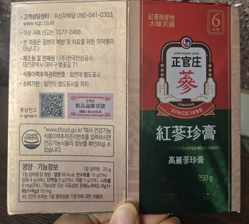 250g 용량도 부담스럽지 않아서 처음 홍삼진고를 접해보는 분들이나 선물용으로 딱 좋은 사이즈예요. 너무 크면 가격도 부담되고 보관도 고민되는데, 이 제품은 그런 걱정이 덜해서 좋았어요. 유통기한도 넉넉해서 천천히 챙겨 먹기에도 문제 없었고요.