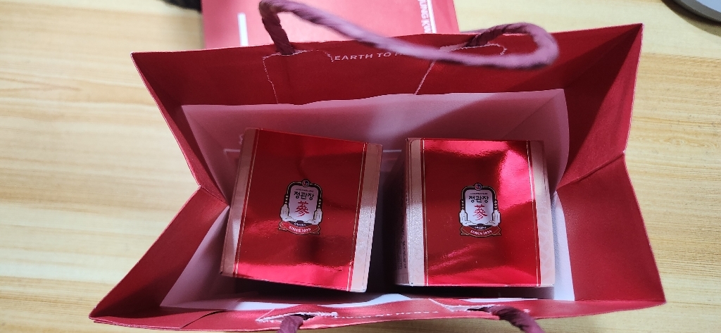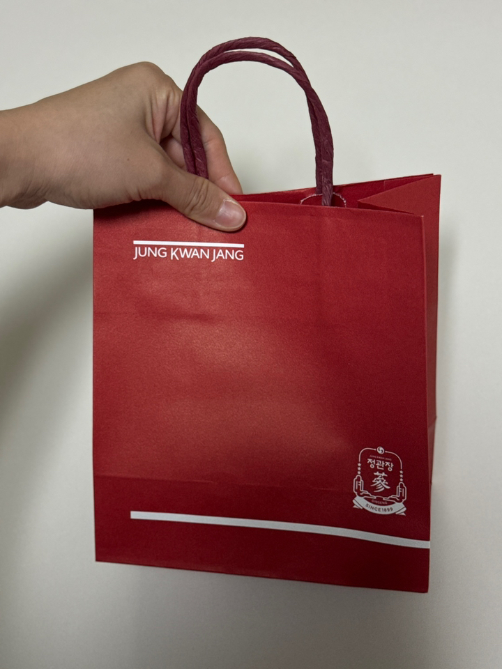 우선 포장부터 고급스럽고 깔끔해서 따로 포장할 필요도 없었어요. 쇼핑백이 세트로 들어 있어서 바로 선물하기에도 편하고, 정관장 제품 특유의 신뢰감 있는 브랜드 이미지 덕분에 받는 분들도 더 좋아하시더라구요.