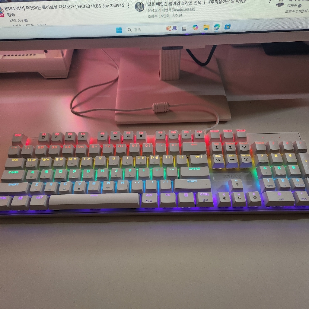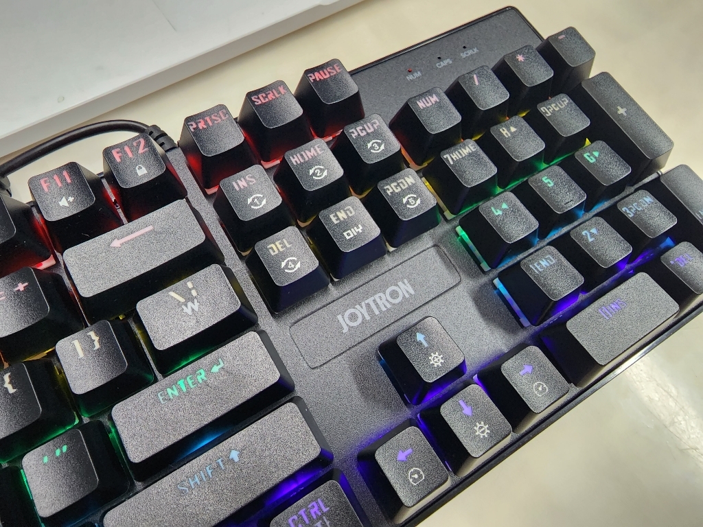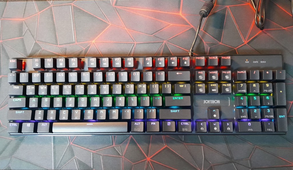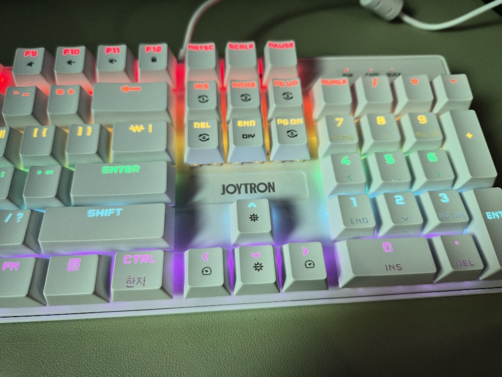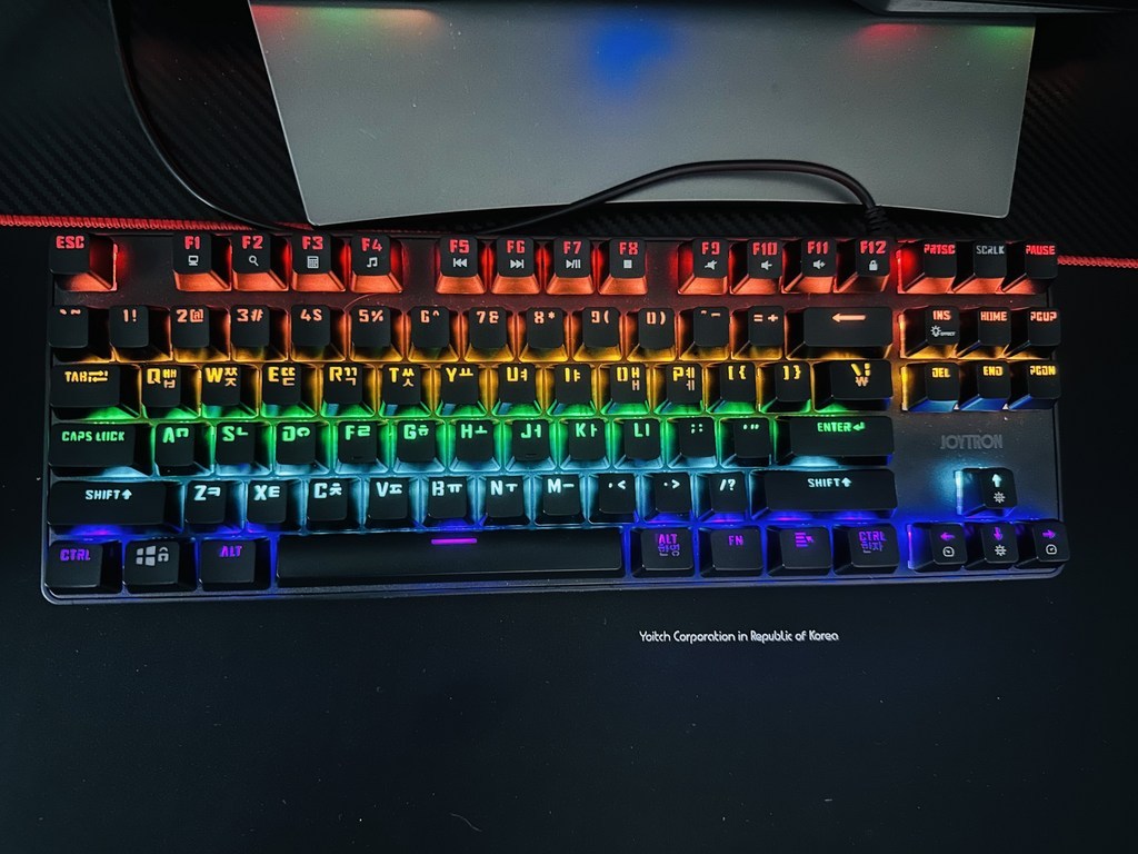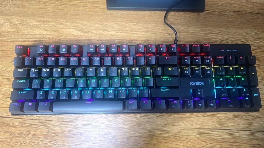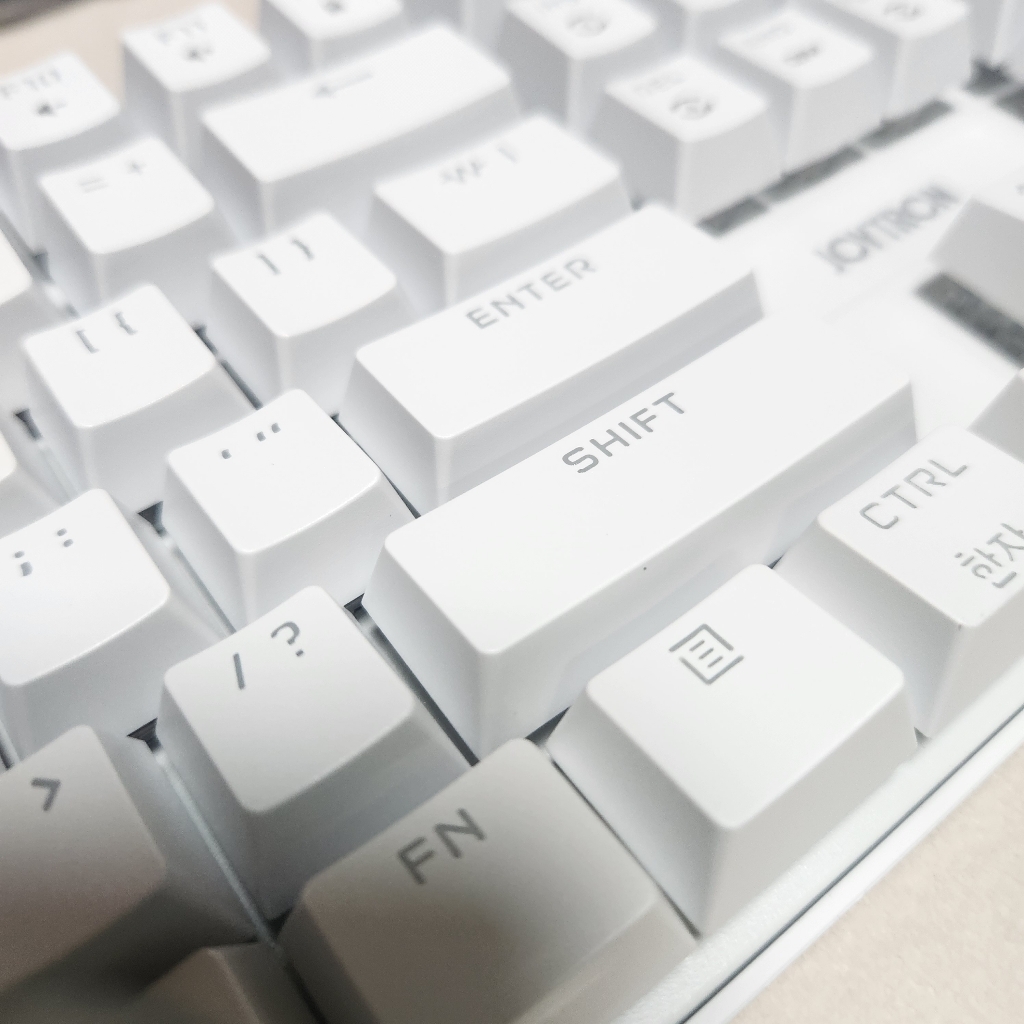 조이트론 키보드는 가격도 적당하고 기계식 키보드의 타자칠때 이 느낌을 충분히 느낄 수 있는 제품이라고 생각합니다. 청축 특유의 타건감을 좋아하거나 처음 기계식 키보드에 입문하려는 분들께 특히 잘 어울리는 모델이에요. 디자인, 키감, 가격까지 전반적으로 균형이 잘 잡힌 키보드라 데스크 환경에 변화를 주고 싶은 분들께 추천하고 싶습니다.