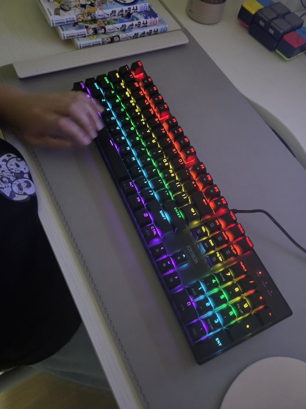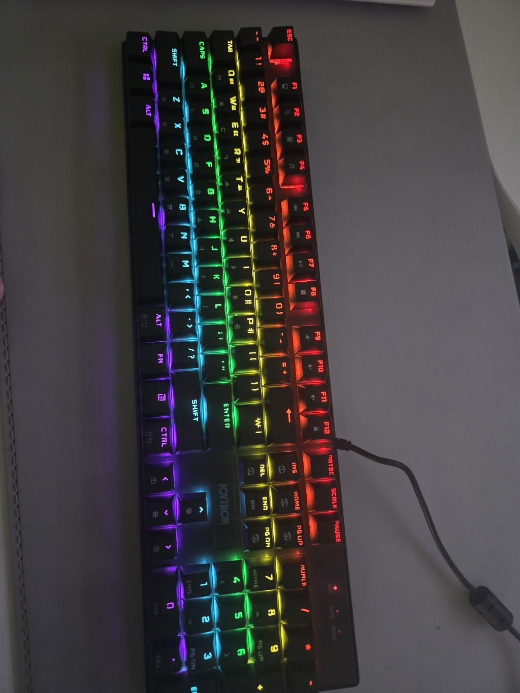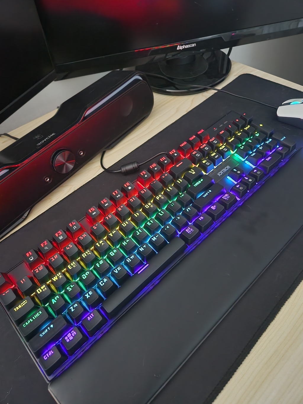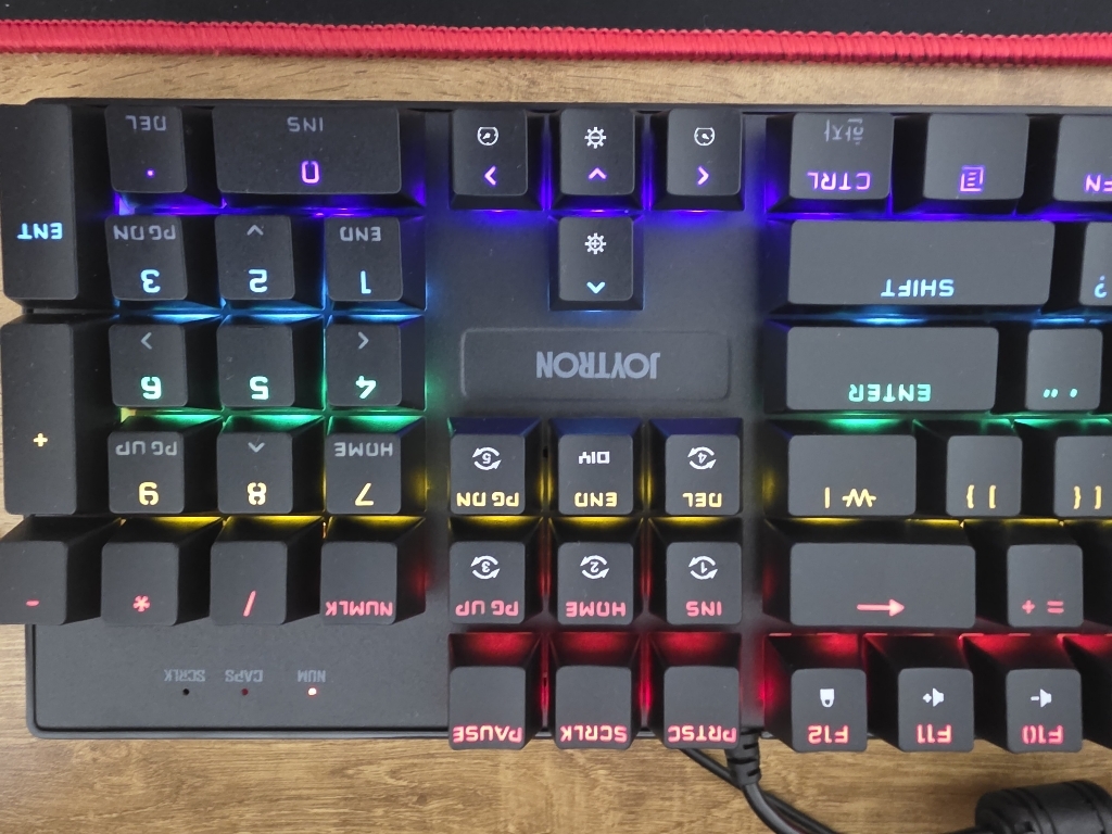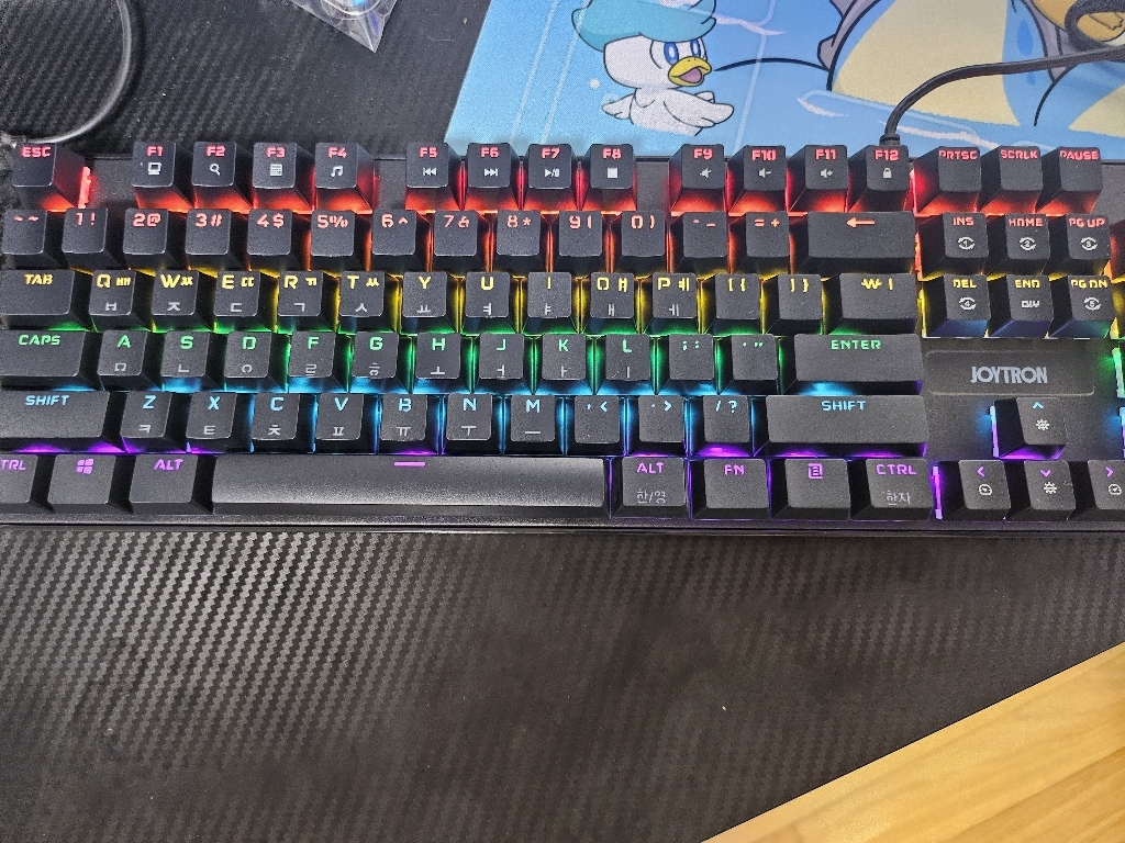 조이트론 키보드는 가격도 적당하고 기계식 키보드의 타자칠때 이 느낌을 충분히 느낄 수 있는 제품이라고 생각합니다. 청축 특유의 타건감을 좋아하거나 처음 기계식 키보드에 입문하려는 분들께 특히 잘 어울리는 모델이에요. 디자인, 키감, 가격까지 전반적으로 균형이 잘 잡힌 키보드라 데스크 환경에 변화를 주고 싶은 분들께 추천하고 싶습니다.