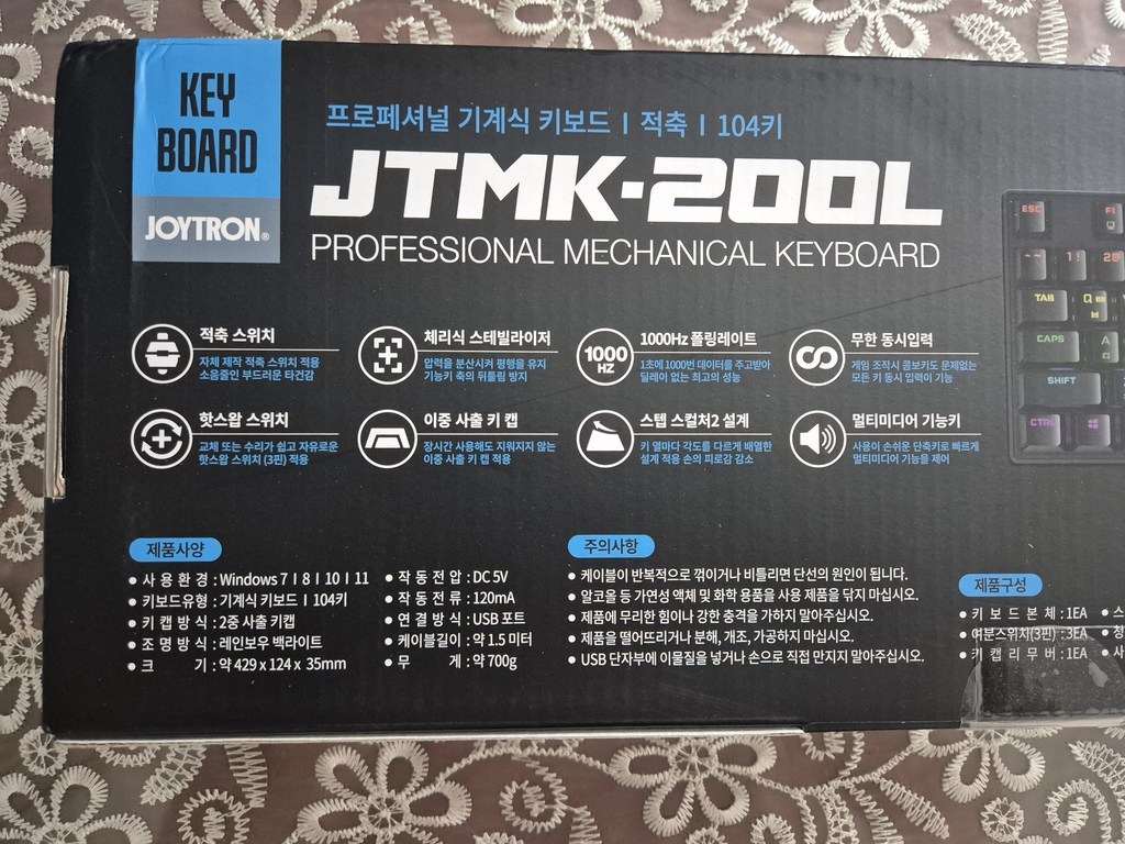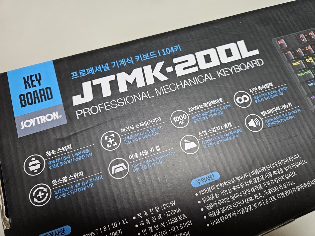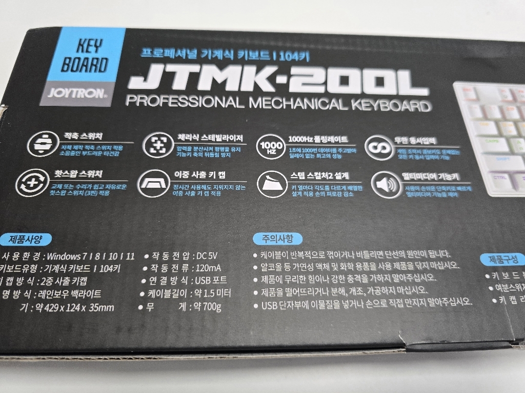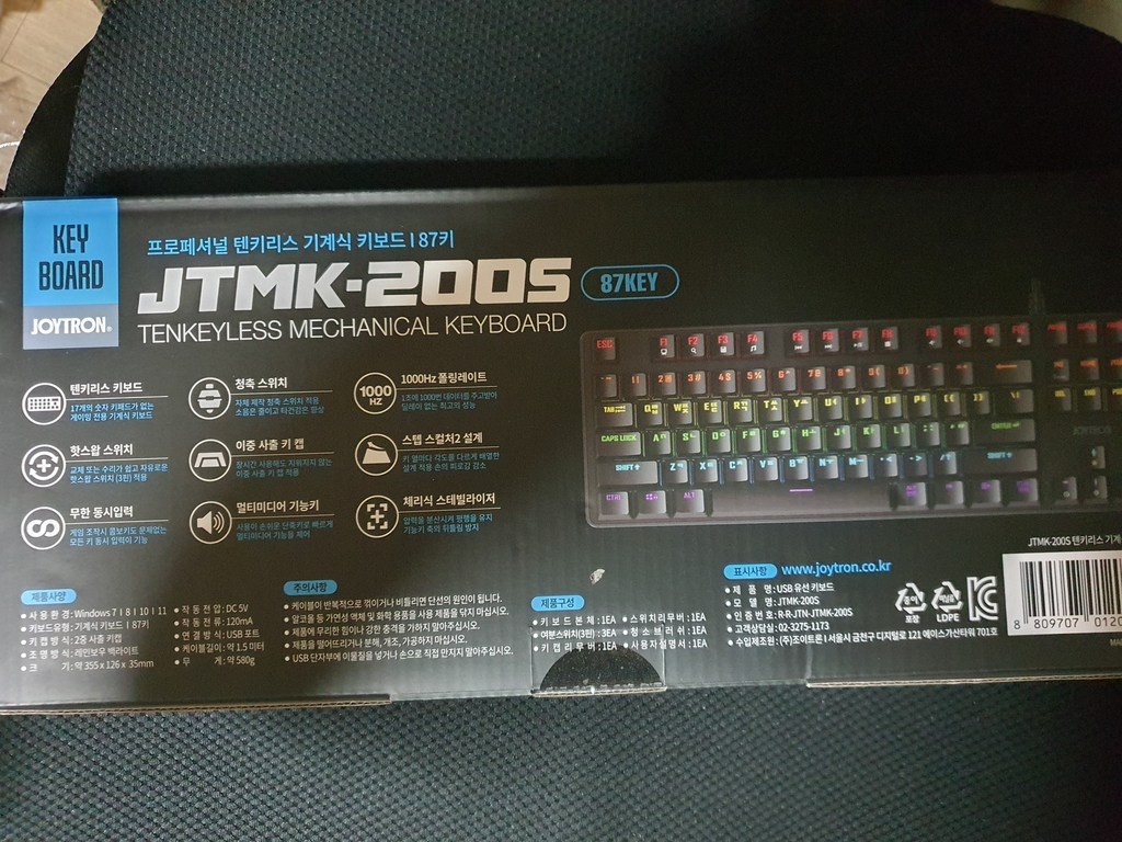 구성품도 많고, 설정값도 다양하고 화려하고, 품질보증기간도 1년. 타격감도 좋고 소리도 경쾌해서