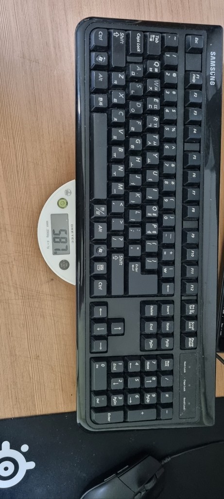 키보드의 무게는 가볍습니다. 크기도 넓직하게 차지하지않고 적당합니다. 마우스와 함께 움직일때 방해받지 않습니다.
