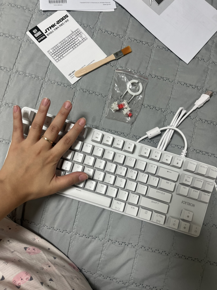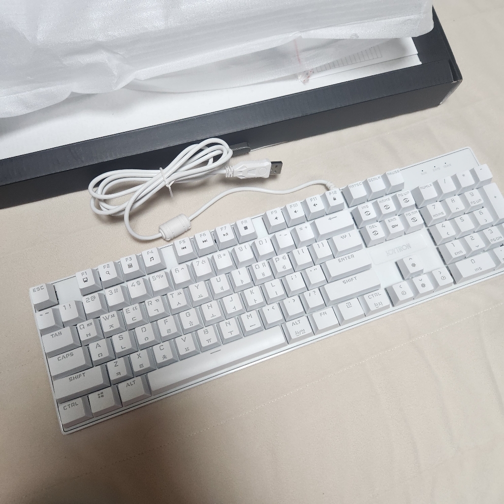 원래 항상 남편이 알아서 키보드 구매해줬는데 이번에는 제가 흰색의 청축 키보드 가지고 싶다고 말해서 남편이 이정도 제품으면 괜찮을 것 같다고 해서 구매했습니다.