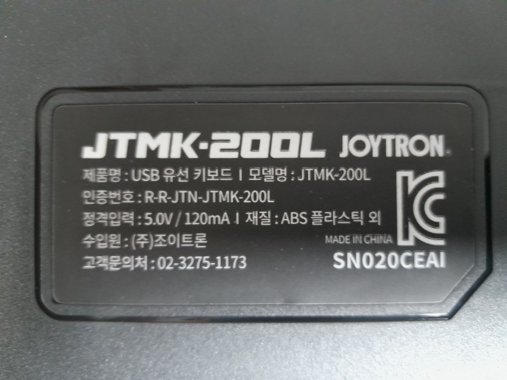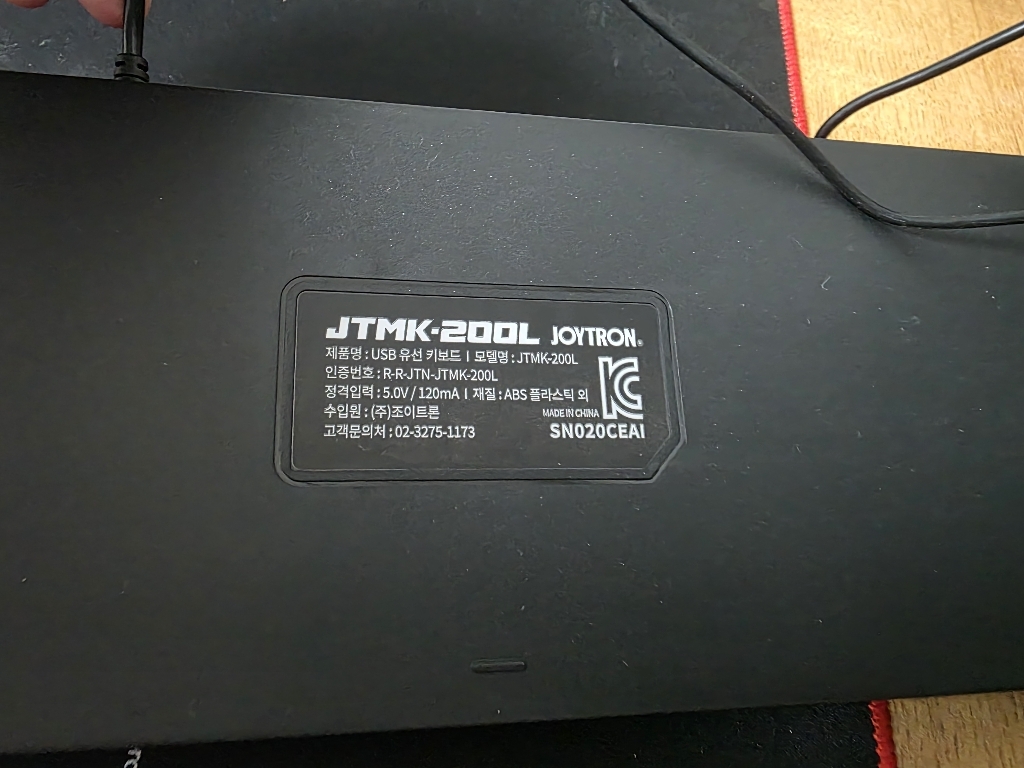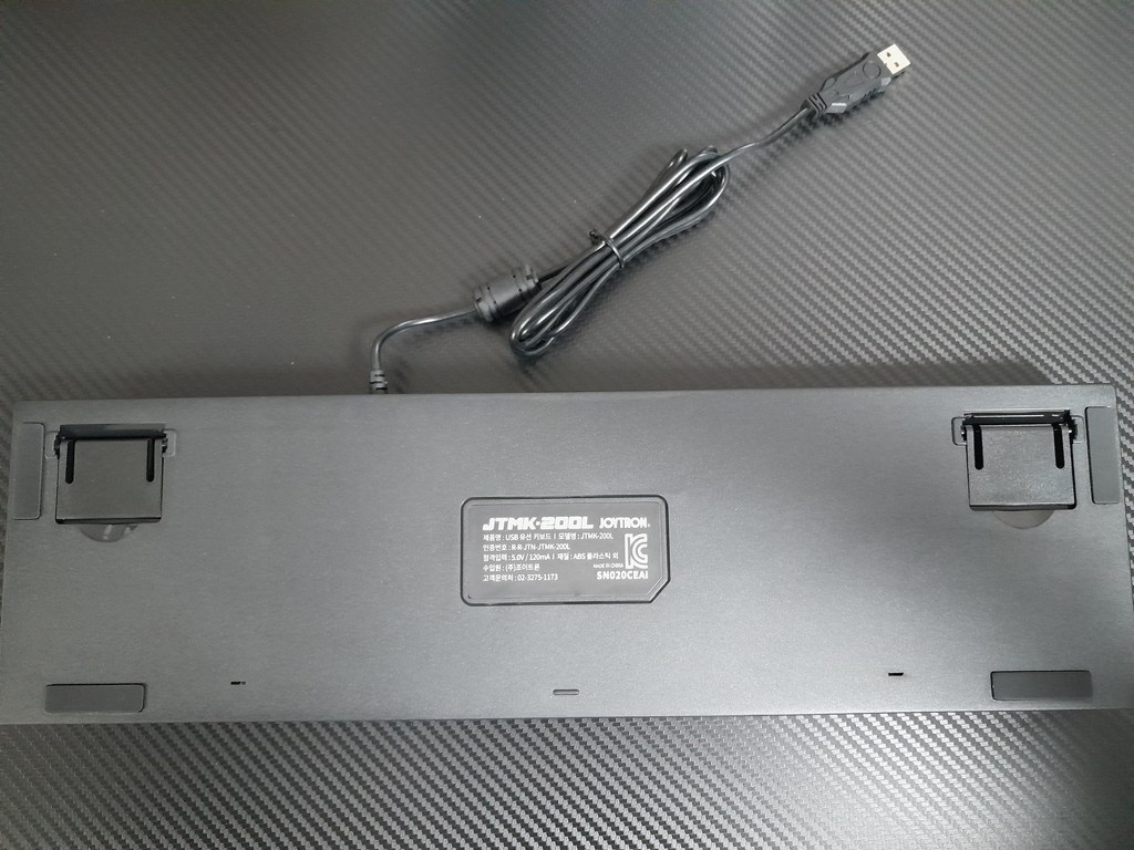 유선 텐키리스 키보드 제품이며 케이블은 우측 후면에 위치에 있어 유선 마우스랑 같이