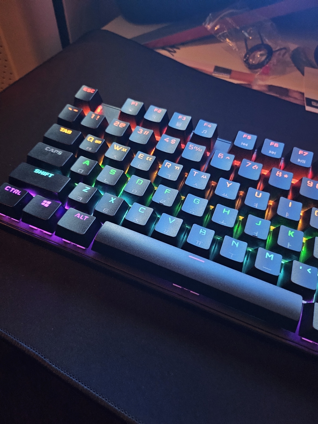 키보드 : 레인보우 백라이트, 기계식 87키 (2중 사출 키캡)
