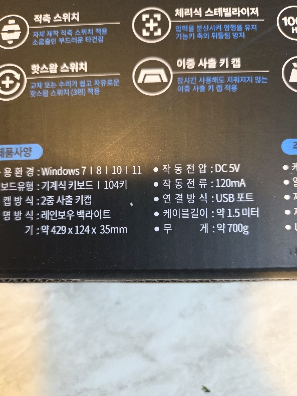 키는 보급형 키보드에 많이 사용하는 ABS 재질의 이중 사출 키캡이 들어갔네요
