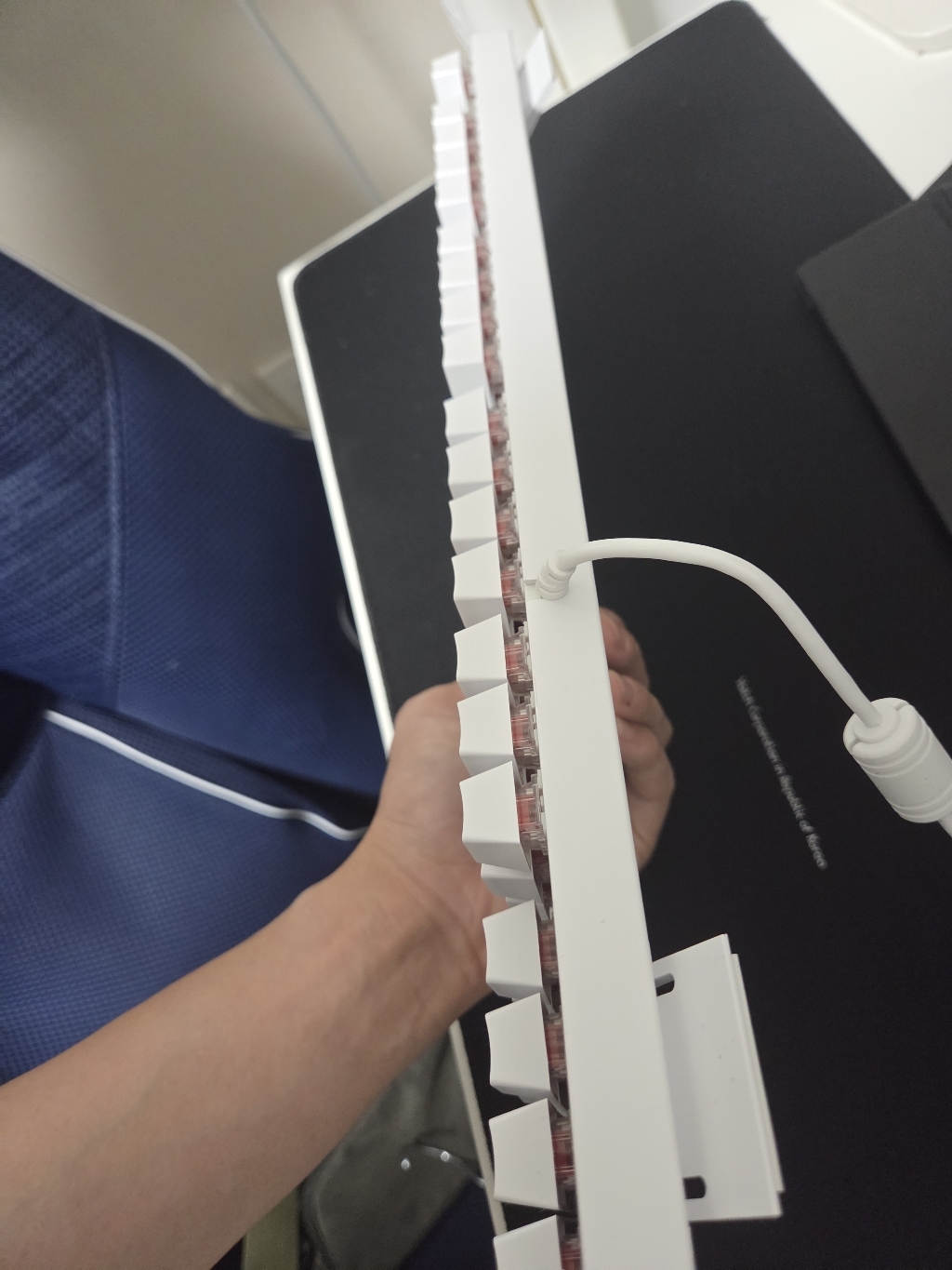 부드럽게 눌리기는 하나 일반 사무실에서 키캡 자체를 좀 낮은 걸 쓰시는 분들이라면 손에 살짝 무리가 있을 수도