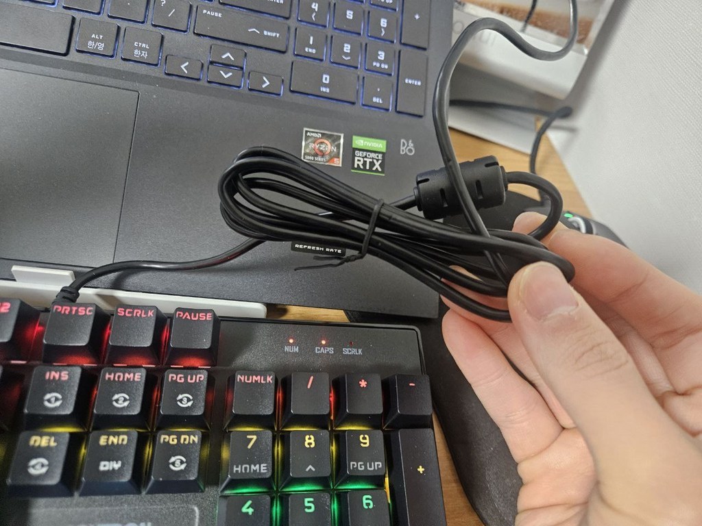 아마 유선으로 연결되어 더 안정적인 것 같은데 선이 늘어진 건 보기에 조금 그렇지만 사용하기에는 좋네요
