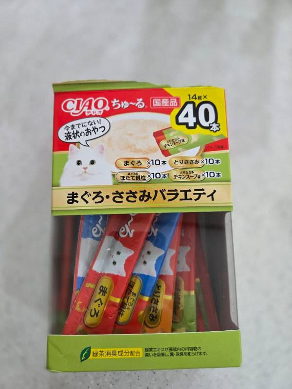 가다랑어/가츠오부시 맛을 구매해보고 너무 잘 먹어서 닭가슴살/해물믹스 맛으로 새롭게 구매해봤어요. 챠오츄르 제품이 워낙 맛이 다양하다 보니 맛을 고르기 쉽지 않은데, 이 제품도 인기가 많은 것 같더라고요!