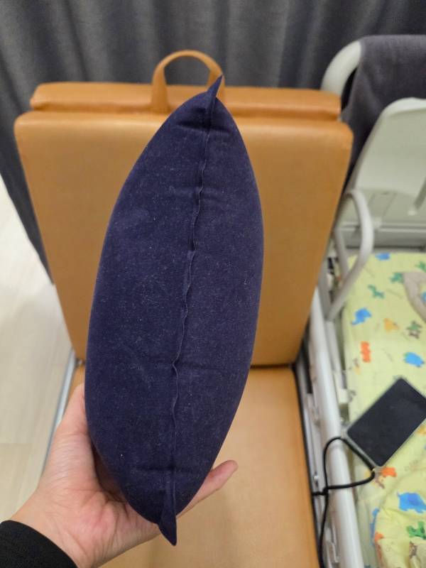 아기 병원에 입원하면서 보호자용으로 사용할 베개가 필요해 쿠팡에서 네이비 색상의 에어베개를 구매했어요. 병원에서 제공되는 베개는 높이나 위생 면에서 아쉬운 부분이 있어서, 휴대가 간편하고 개인적으로 사용할 수 있는 제품을 찾다가 선택하게 됐습니다.