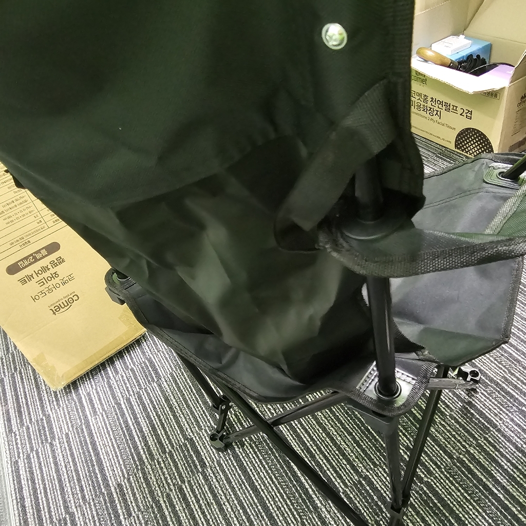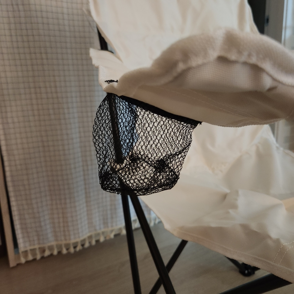 의자 한쪽 팔쪽에 음료수는 꽃아둘 수 있는 주머니와 한쪽에는 물건을 보관할 수 있는 주머니가 있어서 너무 좋아요! 실용성 갑갑