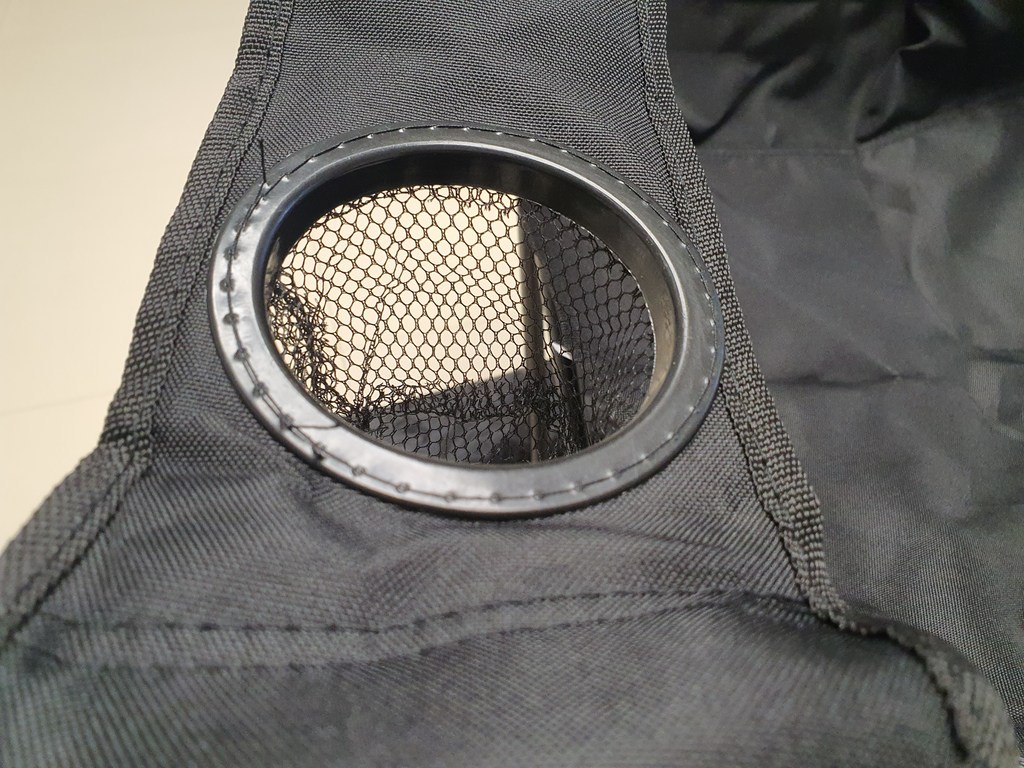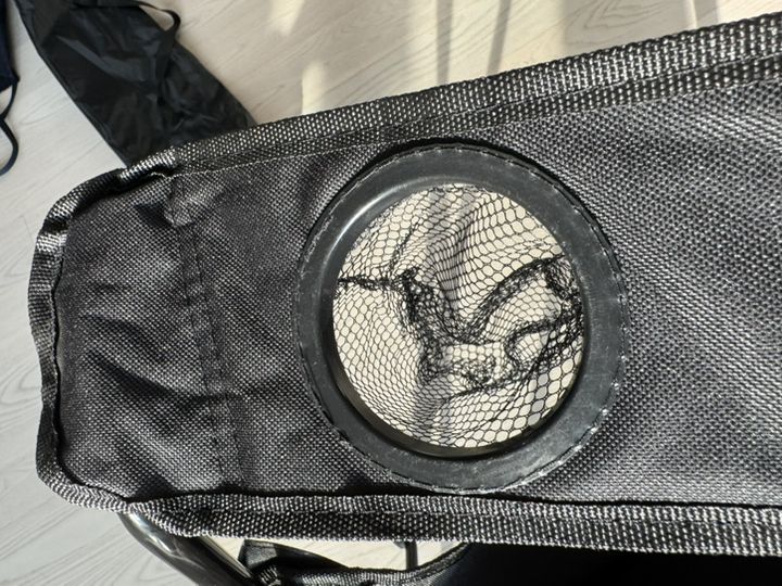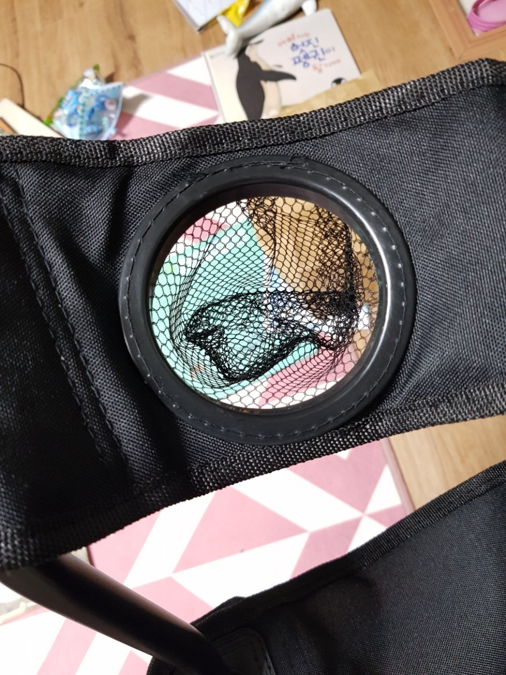 완전 고급스러운 느낌은 아니지만. 가격 생각하면 충분히 납득되는 수준이에요. 박음질도 튼튼한 편이고, 프레임도 견고해서 앉을 때 흔들리거나 불안한 느낌은 전혀 없었어요. 컵홀더가 메쉬라서 물병을 넣으면 약간 흔들리는 느낌이 있긴 한데, 크게 불편하진 않았습니다.