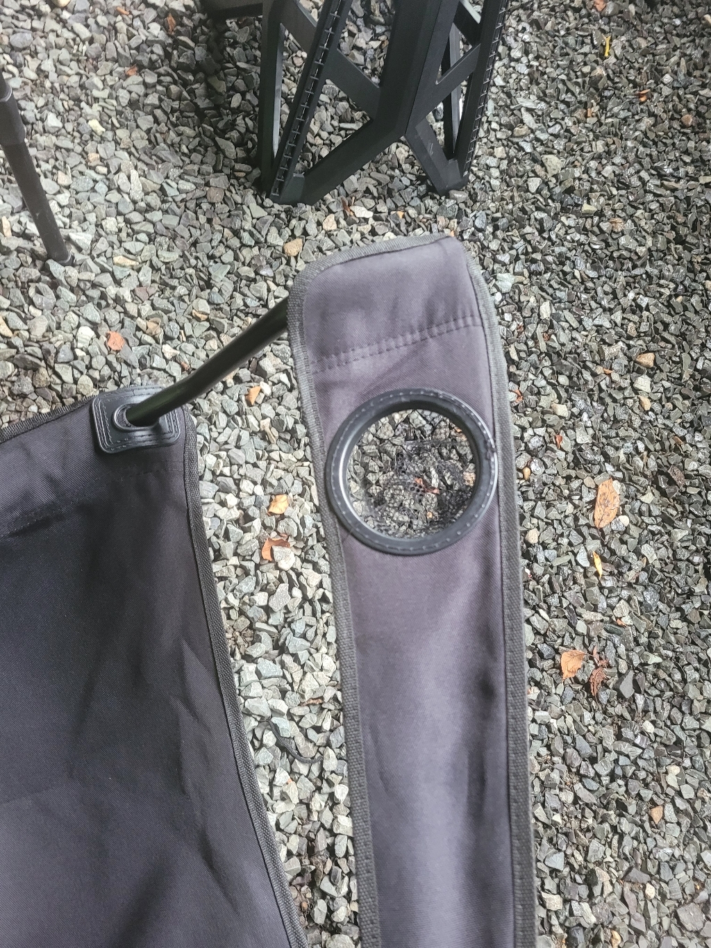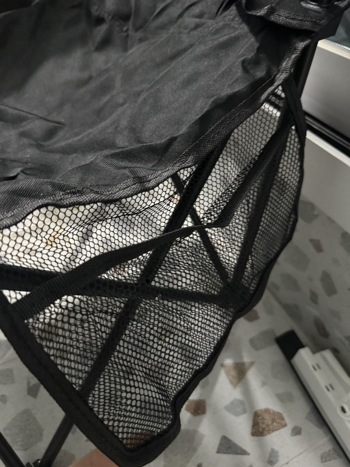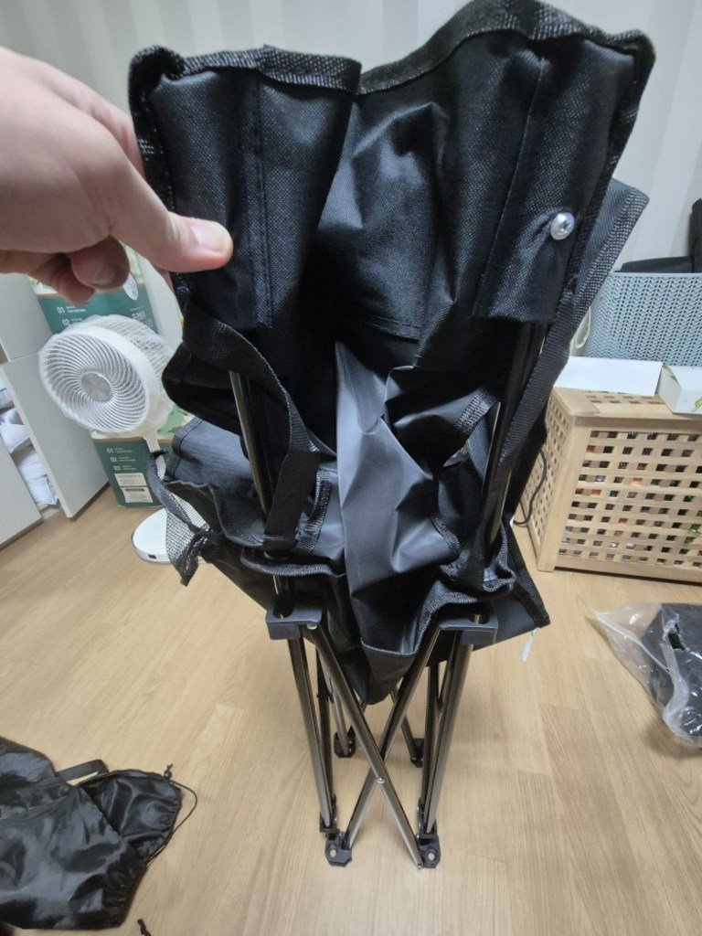 의자 천 재질은 두껍고 질긴 옥스포드 원단으로, 쉽게 해지거나 찢어질 염려가 없었습니다. 물이나 이슬이 닿아도 금방 마르고, 얼룩이 생겨도 닦아내기 쉬운 편이었습니다. 특히 여름철에는 통기성이 좋아 장시간 앉아 있어도 땀이 차지 않았고, 겨울철에는 담요를 덮어 사용하니 푹신하고 따뜻한 느낌으로 활용할 수 있었습니다. 계절에 관계없이 편안하게 사용할 수 있다는 점이 큰 장점이었습니다.