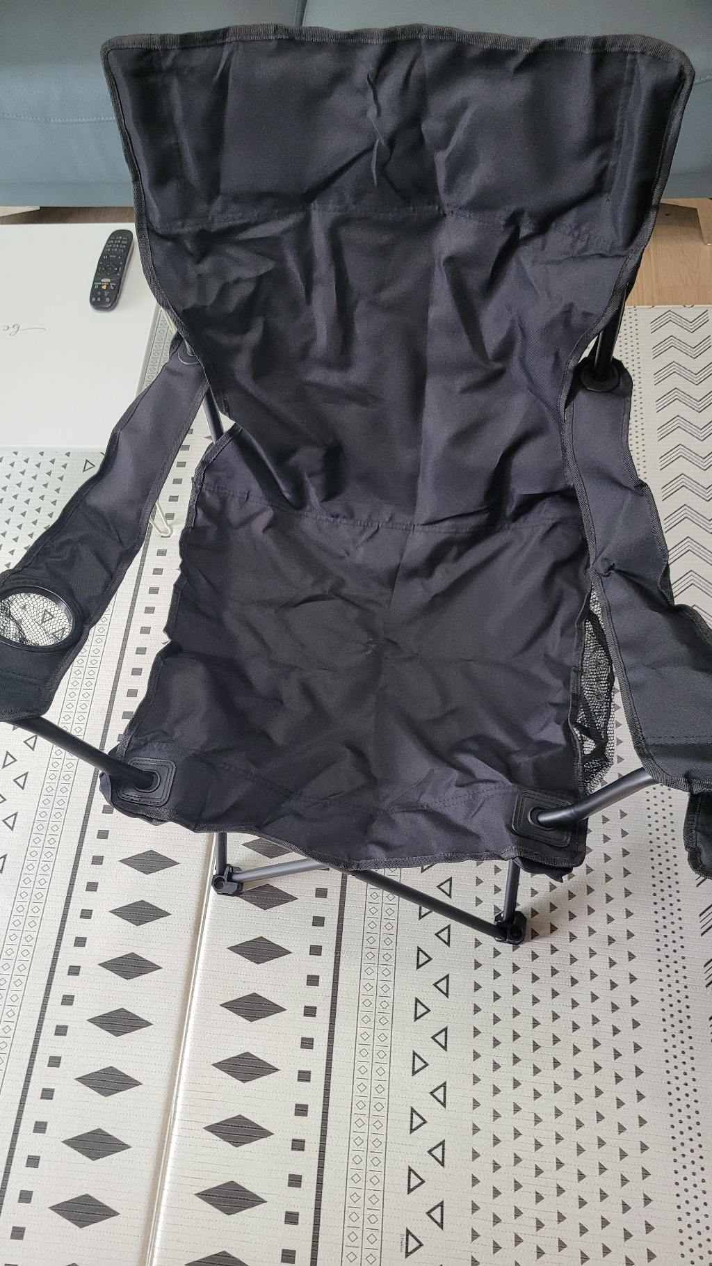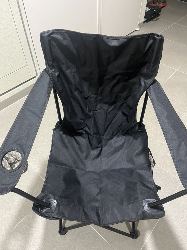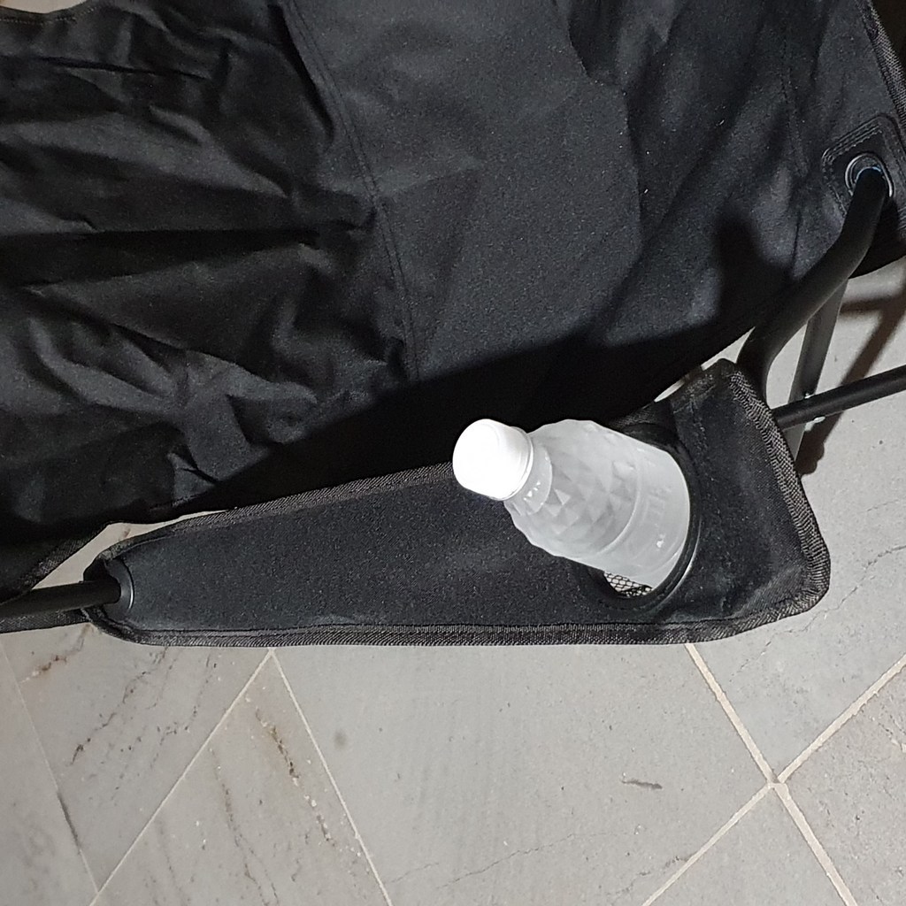 부가적으로 팔걸이 부분에 컵 홀더가 있어서 캠핑 중 마시는 음료 등을 넣기에 딱 알맞은 크기였고 사이드 포켓의 경우 핸드폰 등을 앉아있을 때 보관할 수 있어서 좋았습니다. 접고 펼 때도 크게 힘 들이지 않고 할 수 있고 무게도 무겁지 않은 적당히 가벼운 느낌이라 남녀노소 누구나 사용하기 편하다는 장점도 있습니다. 외부에 두는 제품인 만큼 오염이 눈에 보이지 않을까 걱정이었는데 색상도 블랙이라 잘 티가 나지 않아서 이 점도 만족스러웠습니다.