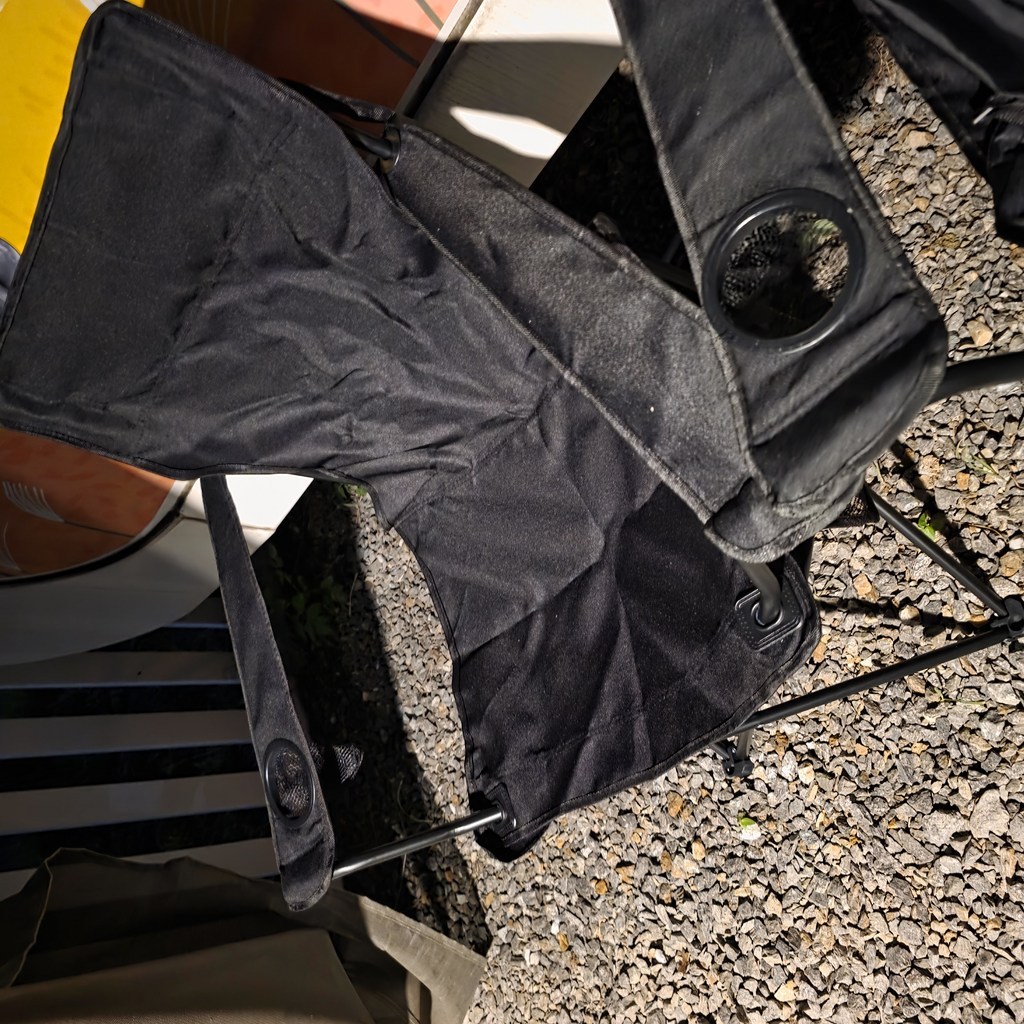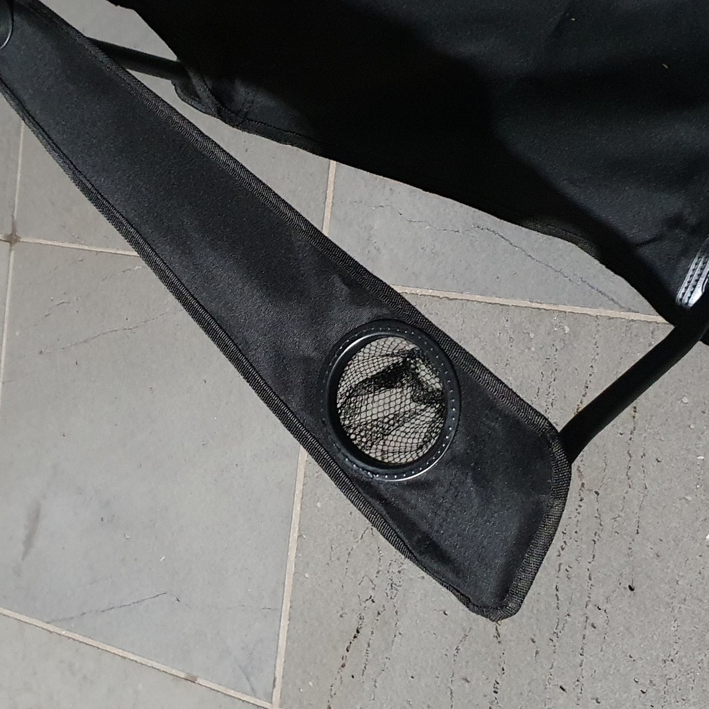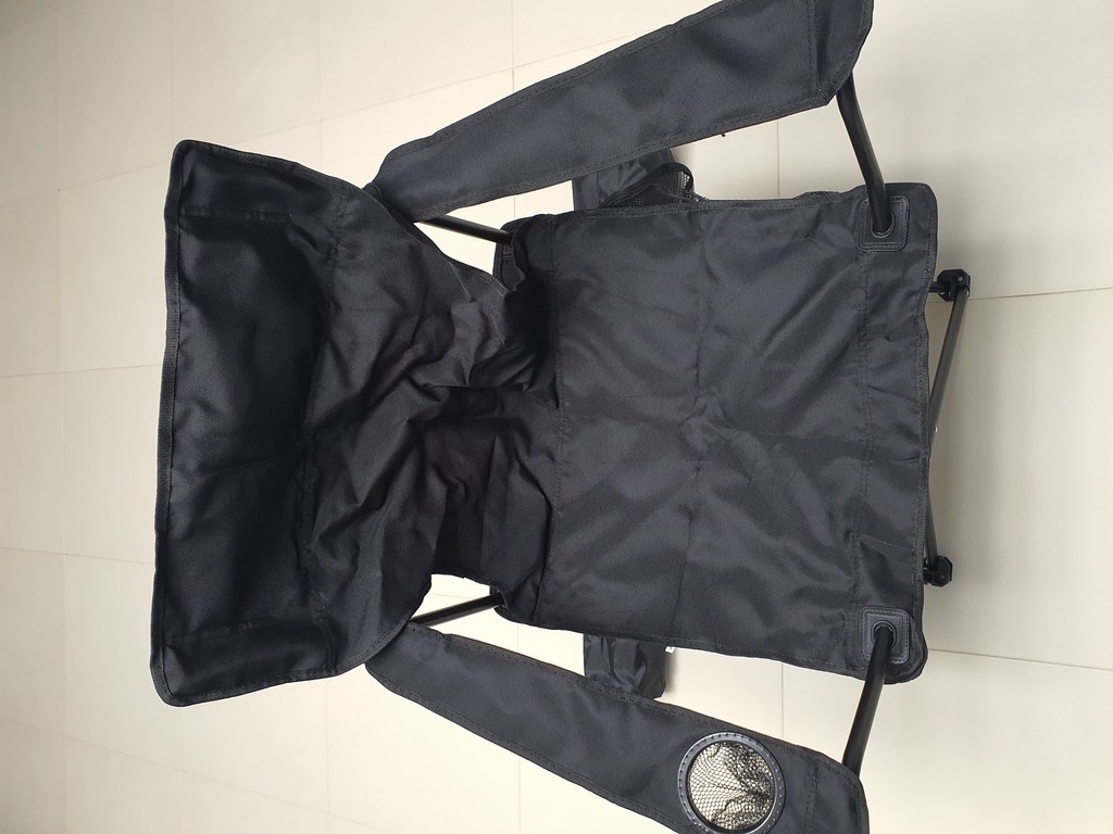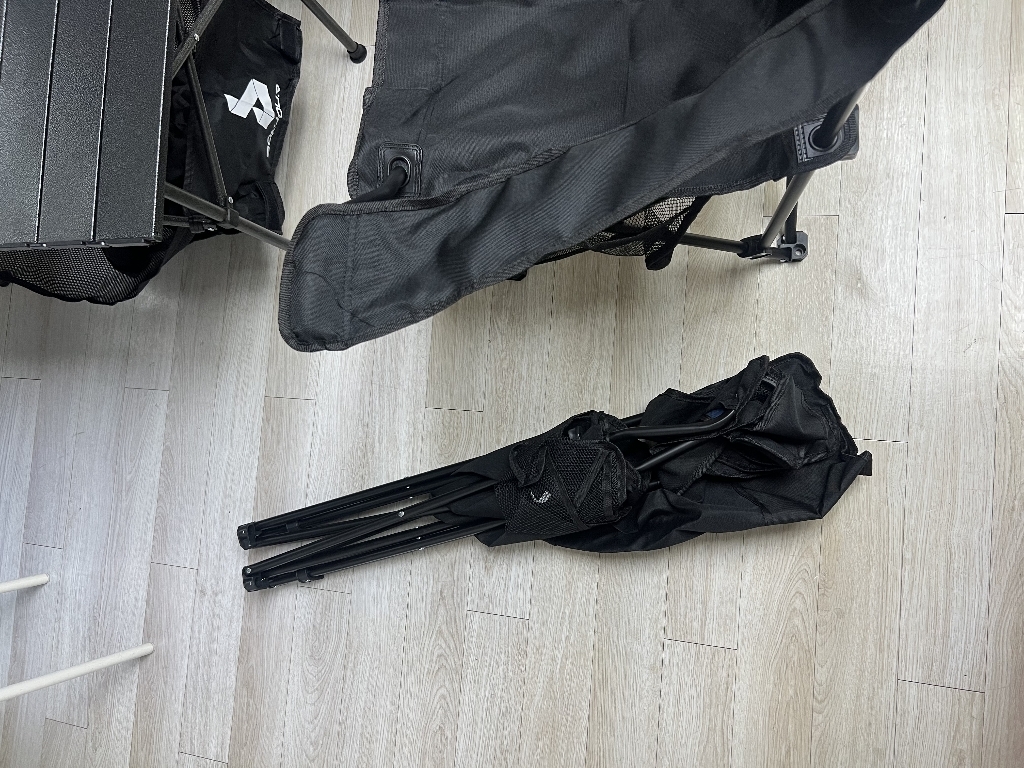 부가적으로 팔걸이 부분에 컵 홀더가 있어서 캠핑 중 마시는 음료 등을 넣기에 딱 알맞은 크기였고 사이드 포켓의 경우 핸드폰 등을 앉아있을 때 보관할 수 있어서 좋았습니다. 접고 펼 때도 크게 힘 들이지 않고 할 수 있고 무게도 무겁지 않은 적당히 가벼운 느낌이라 남녀노소 누구나 사용하기 편하다는 장점도 있습니다. 외부에 두는 제품인 만큼 오염이 눈에 보이지 않을까 걱정이었는데 색상도 블랙이라 잘 티가 나지 않아서 이 점도 만족스러웠습니다.