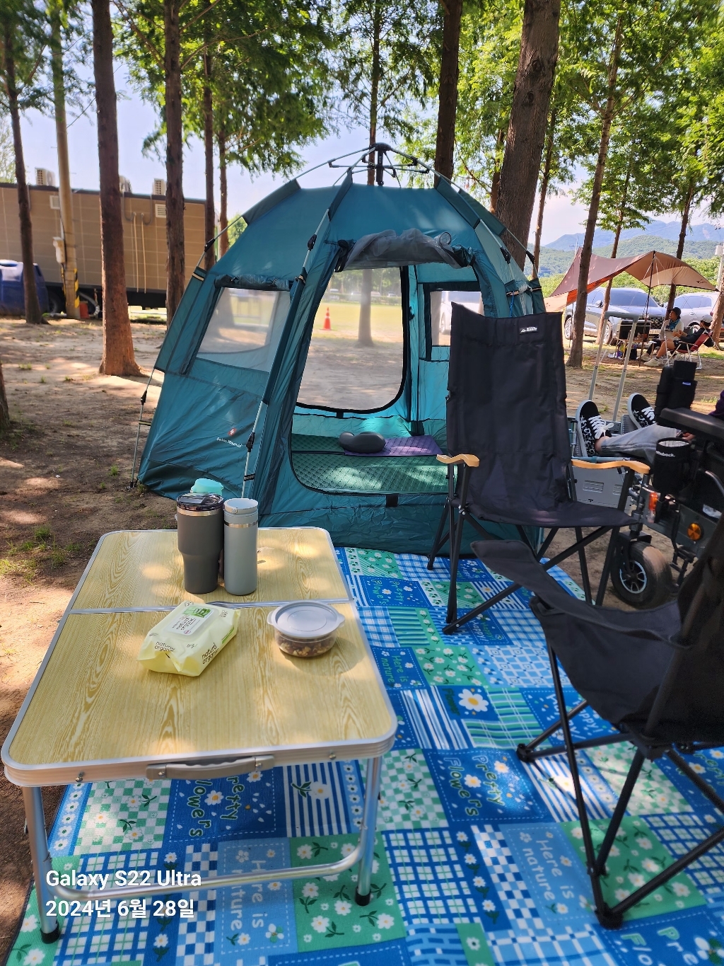 그리고 은근히 중요한 요소인 컵홀더 구성도 마음에 들었어요. 음료나 물병을 옆에 두고 편하게 쉴 수 있어서 캠핑의 여유를 한층 더 즐길 수 있었고, 스마트폰이나 작은 소지품을 넣어두기에도 유용했어요.