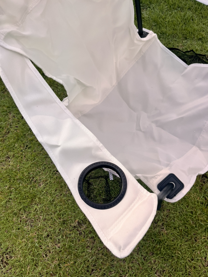 양쪽 팔걸이에는 컵홀더가 있어서 음료를 두기에도 편리했습니다. 캠핑 중에 커피나 물병을 안정적으로 놓을 수 있어 테이블이 따로 없어도 불편하지 않았습니다. 작은 간식이나 휴대폰을 잠깐 올려두기에도 좋았고, 자리에 오래 앉아 쉴 때 정말 유용했습니다.