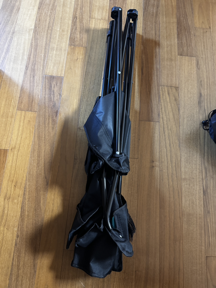 접으면 생각보다 컴팩트하게 정리됩니다. 접이식 구조가 단단하면서도 부드럽게 작동해서 손이 끼이거나 버벅거리는 느낌이 없습니다. 전용 수납가방이 포함되어 있어 옮길 때 어깨에 멜 수 있는데, 무게 밸런스가 잘 잡혀서 장거리 이동도 크게 부담스럽지 않았습니다.