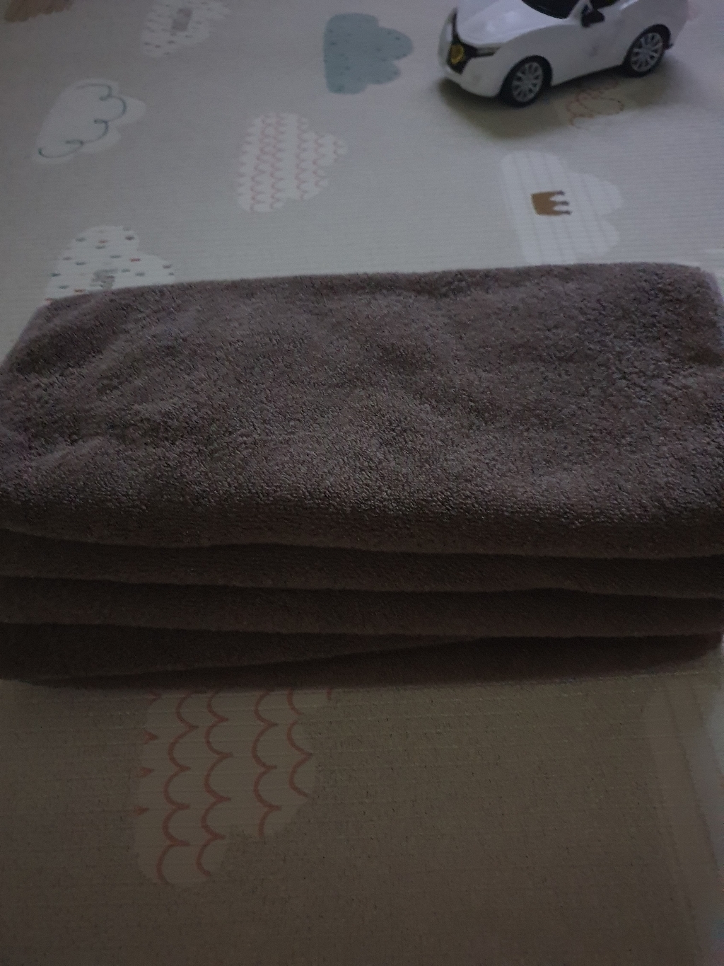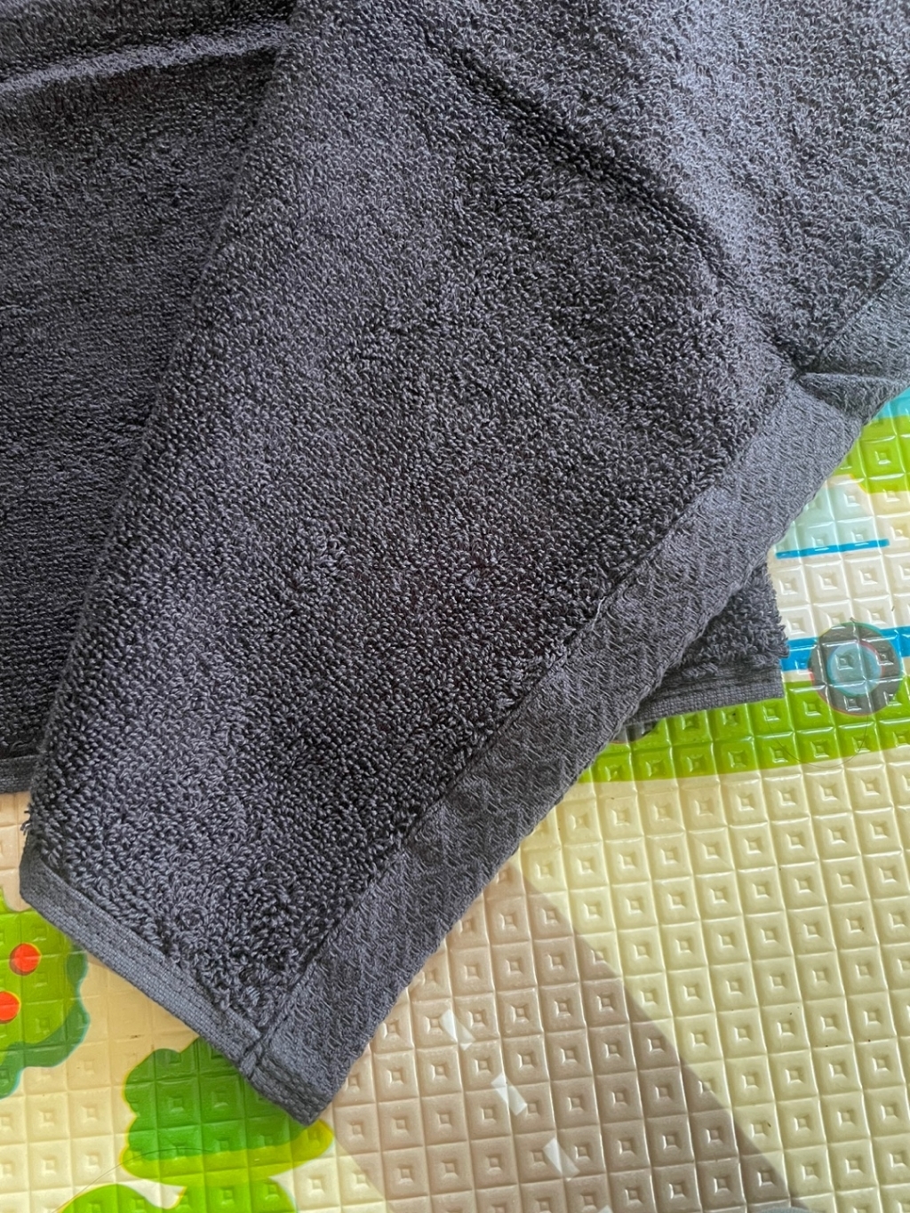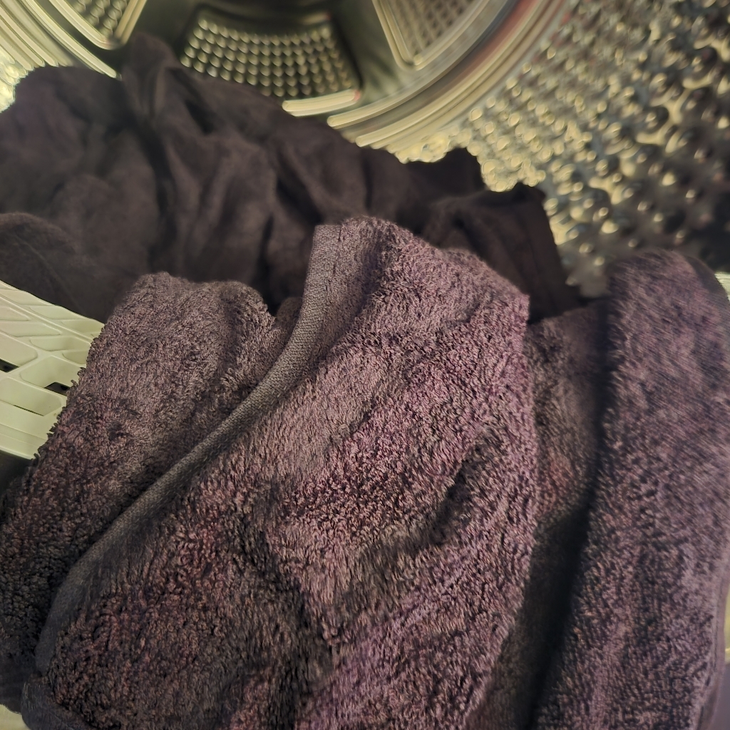건조기 오기 전이라 세탁기로만 2번 돌리고 자연건조 해서 쓰는데 몸 닦고 나서 로션을 바르는데 손에 까만 먼지가 땟국수 처럼 나와서 바로 다시 세탁 했습니다.