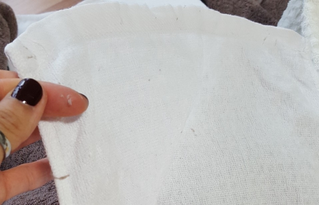 코마사 원단이라 그런지 손에 닿는 느낌이 폭신폭신하고, 물기도 금방 흡수돼요.