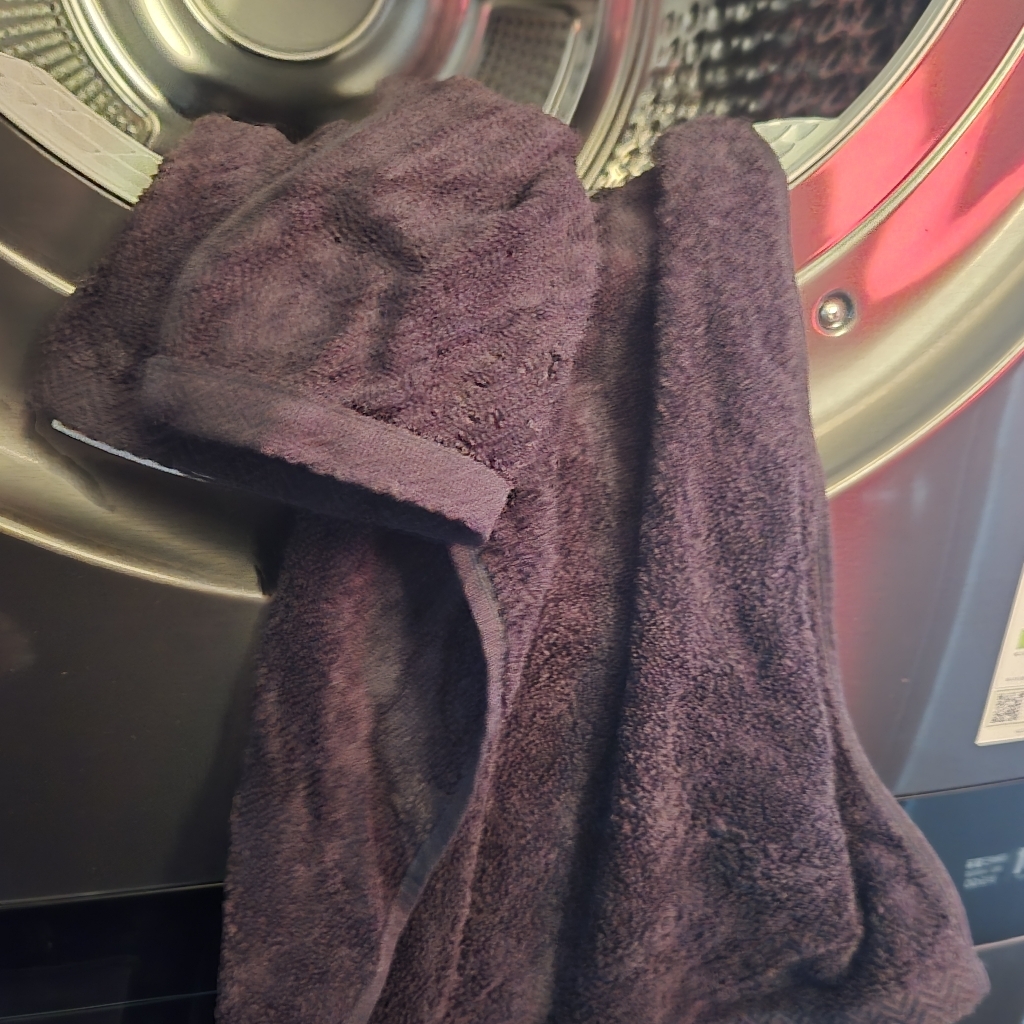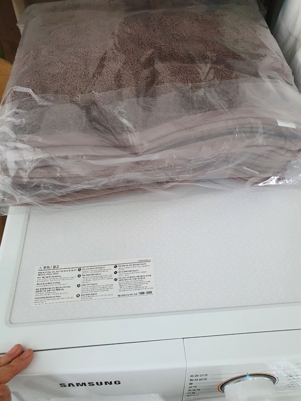 세탁이 끝나면 수건을 건조기에 일반코스로(뜨겁게 돌려지는 1시간40분코스) 돌렸어요