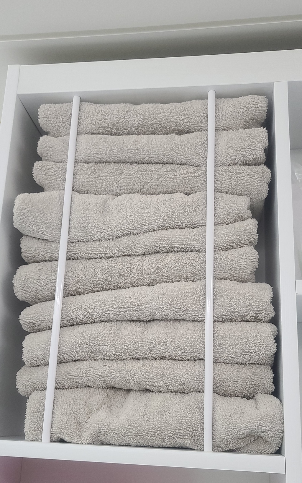 윗층은 흰 수건, 아랫층은 회색 수건 사용하는 것으로
