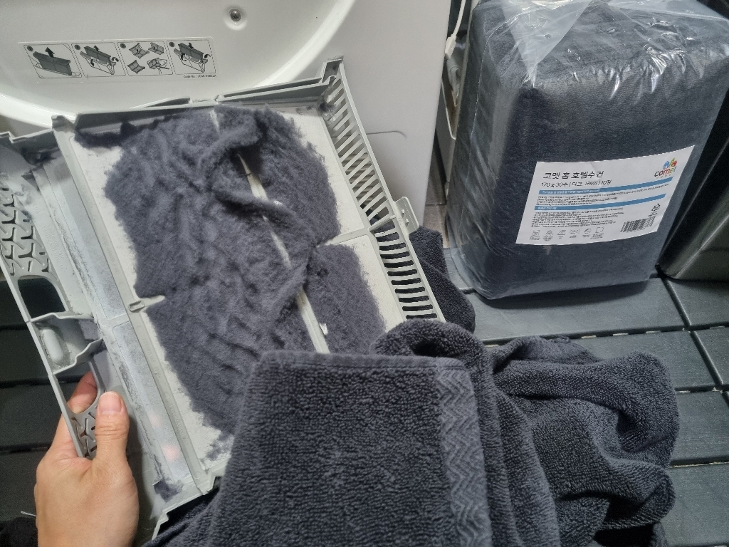 수건 뿐만 아니라 여태 세탁기 돌리면서 먼지가 이렇게 많이 쌓인 게 처음이라 뭐라 할 말이 없어요..