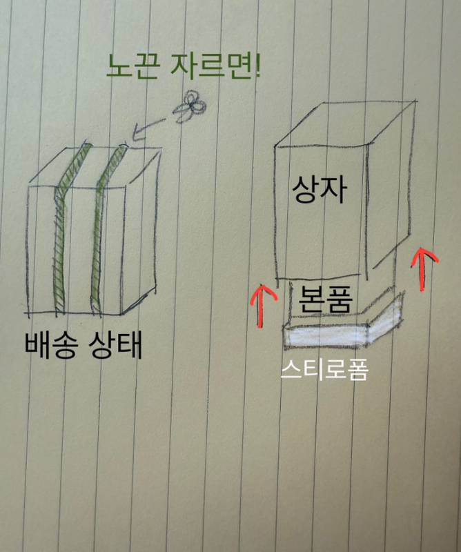 그게 아니라 노끈 자르고 배송상자를 위로 올리면